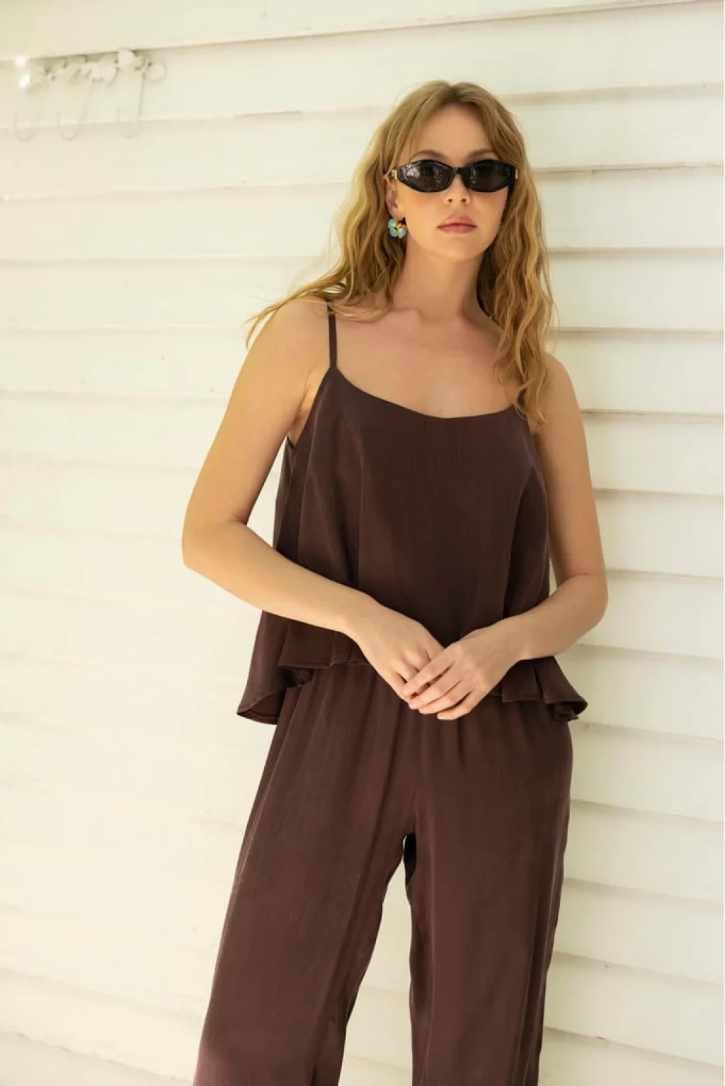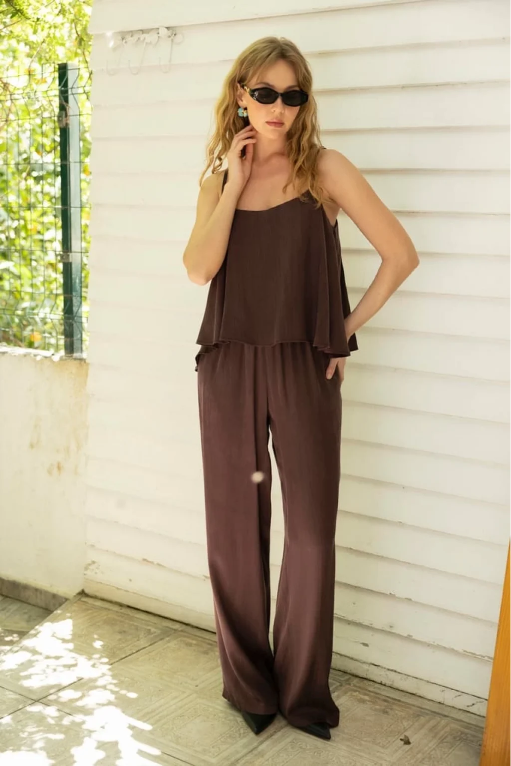 Premium Serisi Askılı Bluz Pantolon Takım-Mürdüm