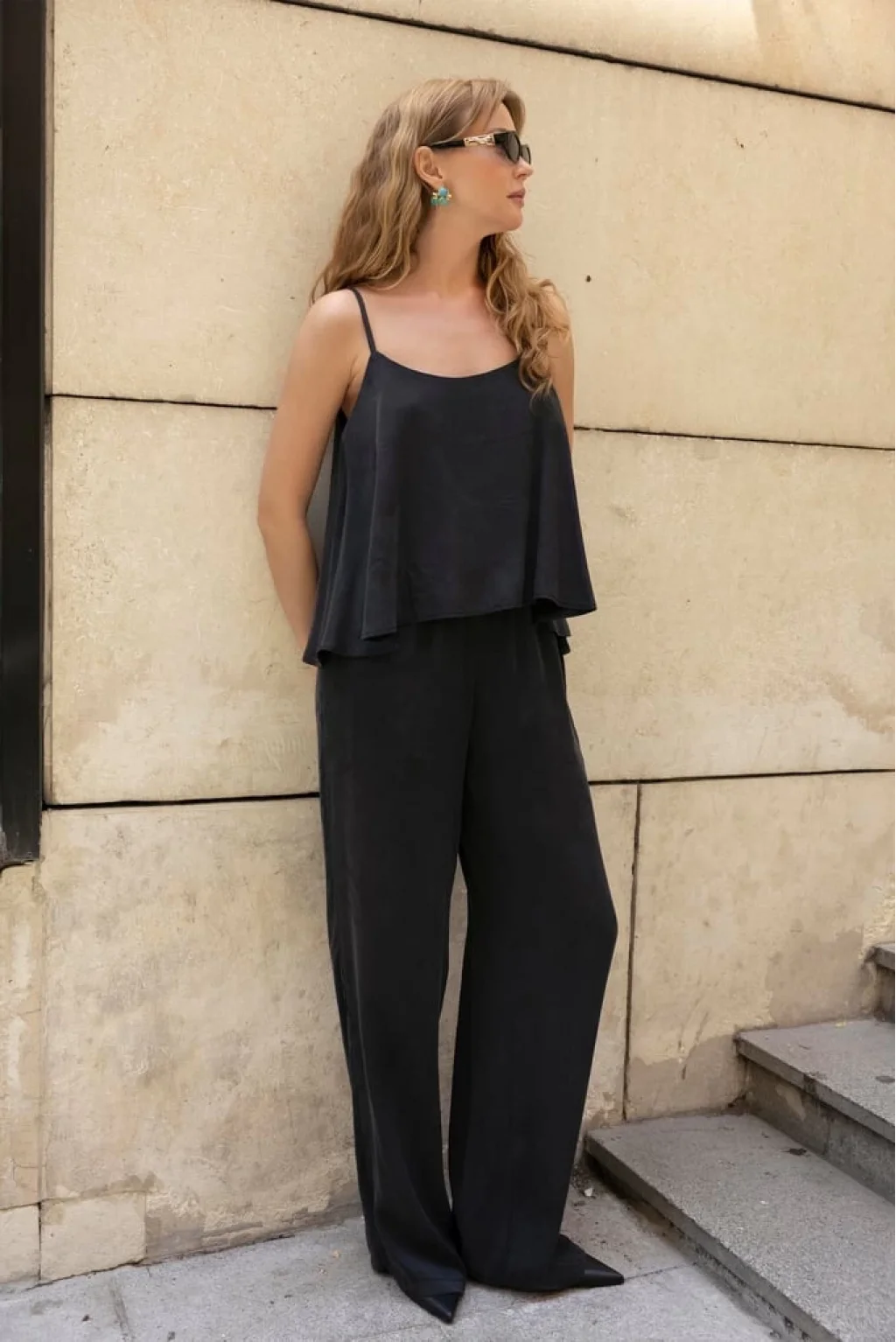 Premium Serisi Askılı Bluz Pantolon Takım-Siyah