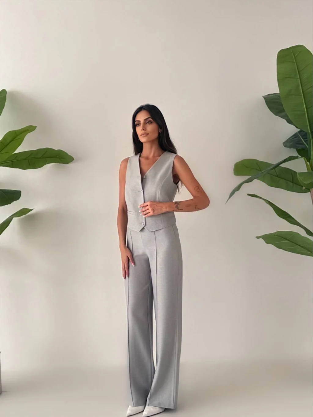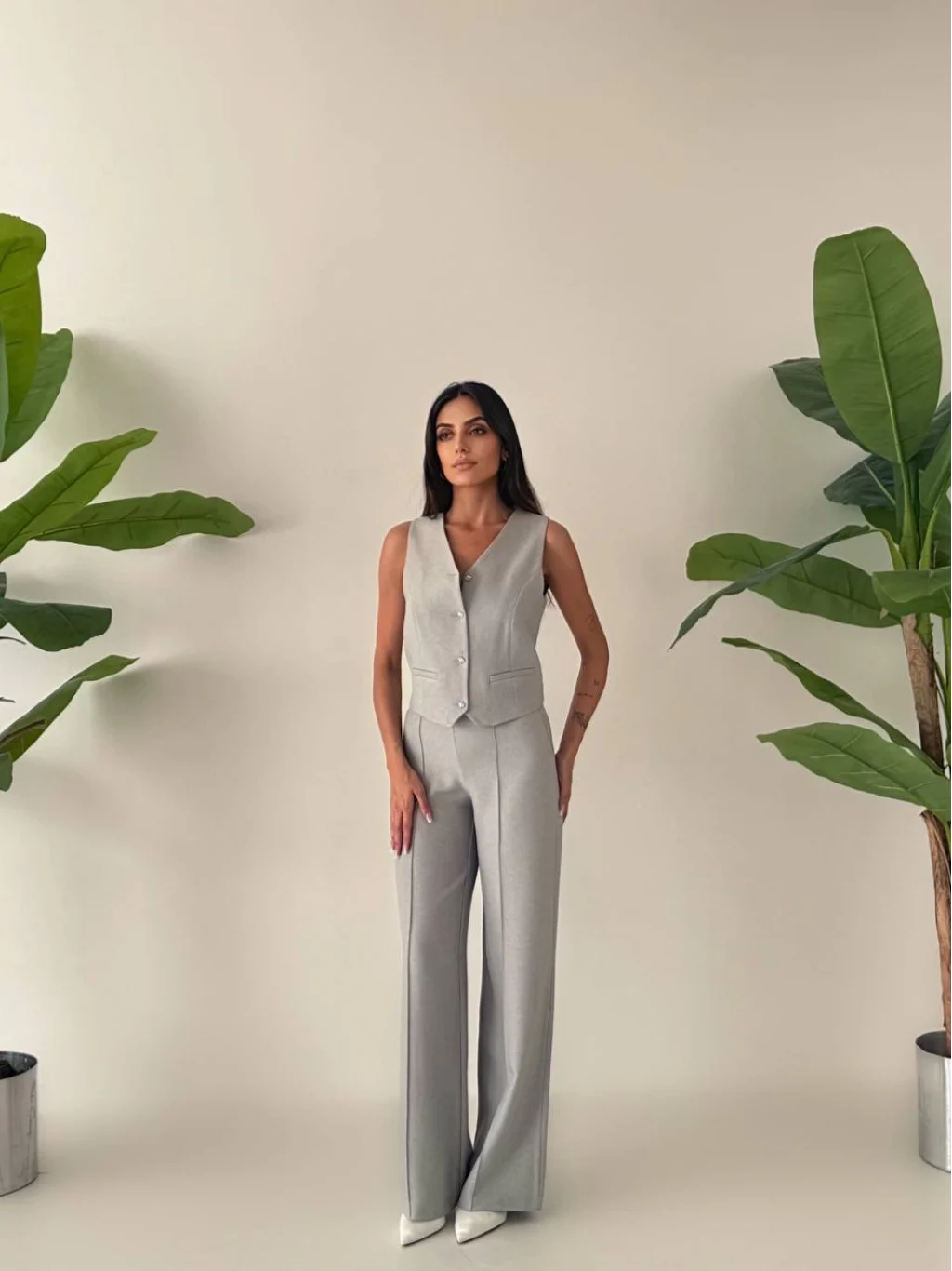• MYRA Premium Kalitede, Astarlı Yelek ve Palazzo Pantolondan Oluşan Yelek Pantolon Takımı.