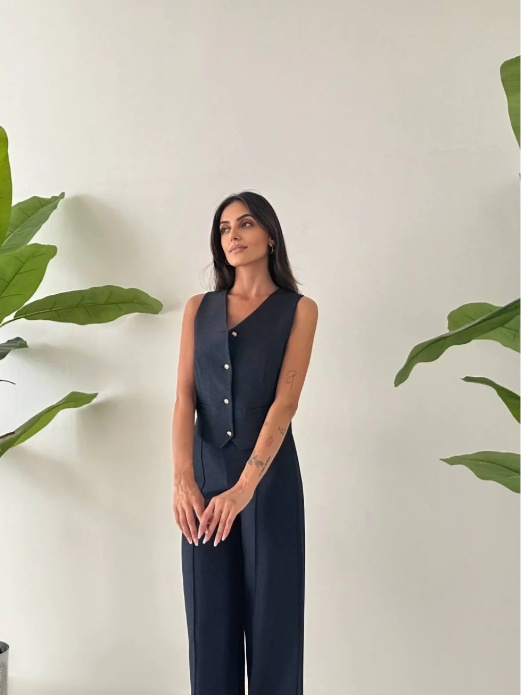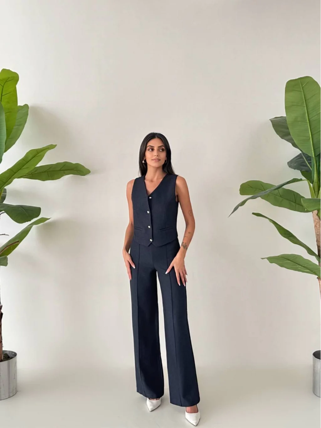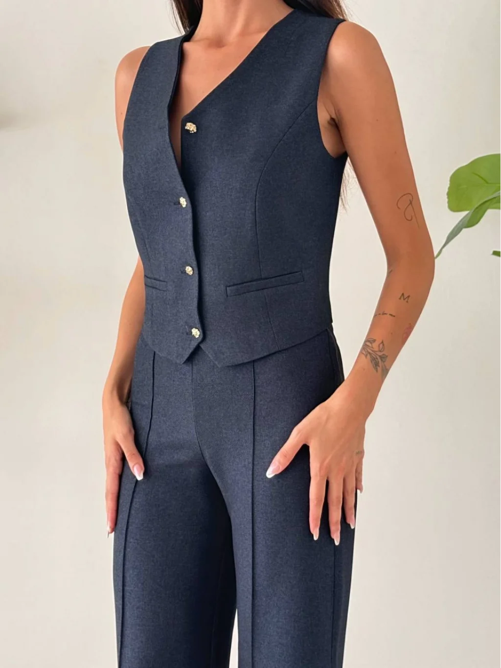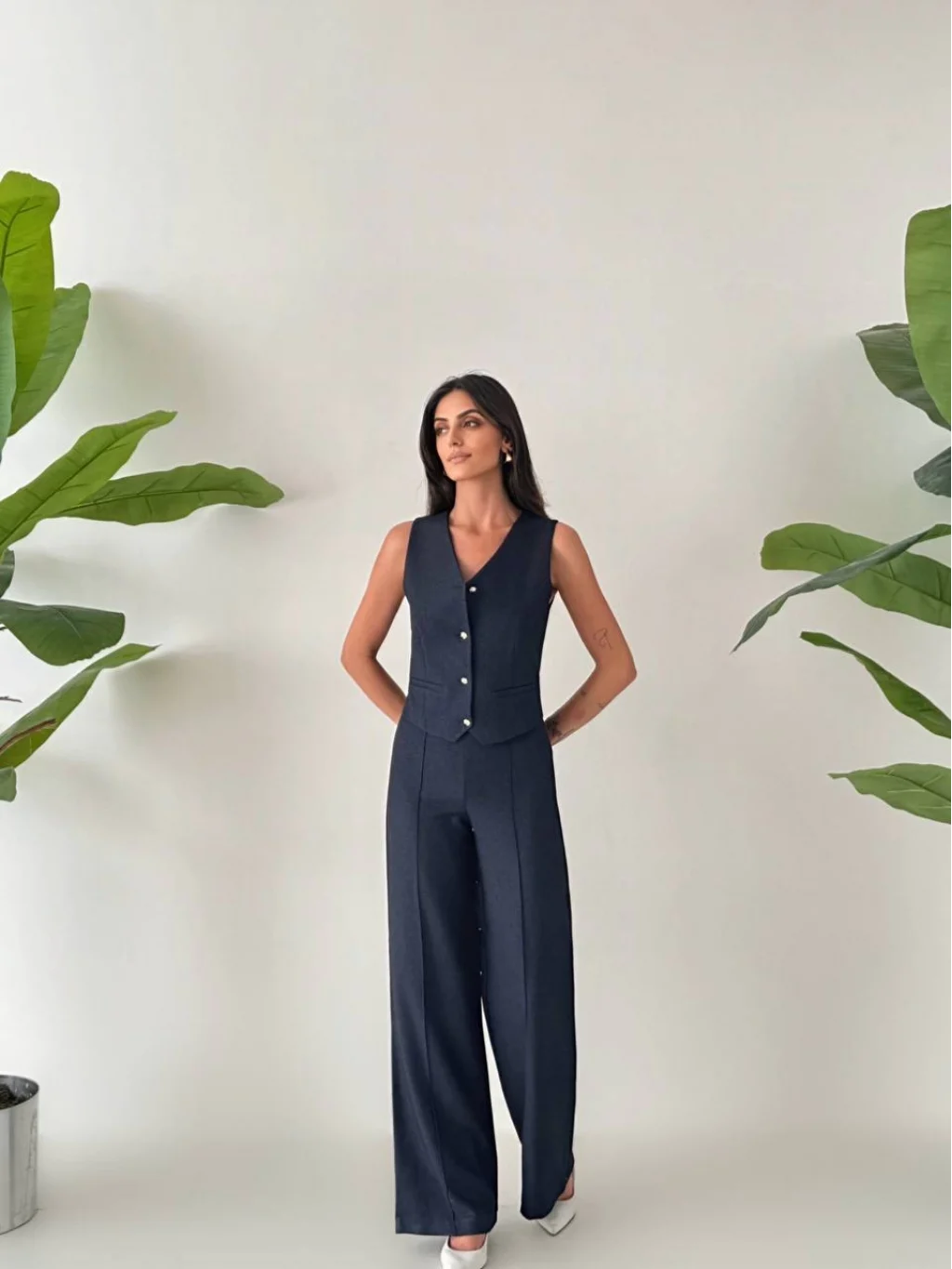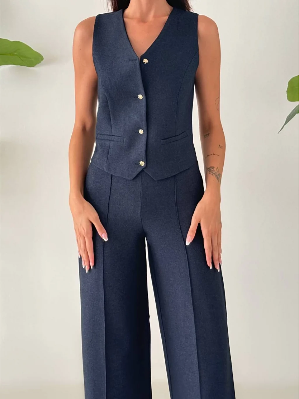 • MYRA Premium Kalitede, Astarlı Yelek ve Palazzo Pantolondan Oluşan Yelek Pantolon Takımı.