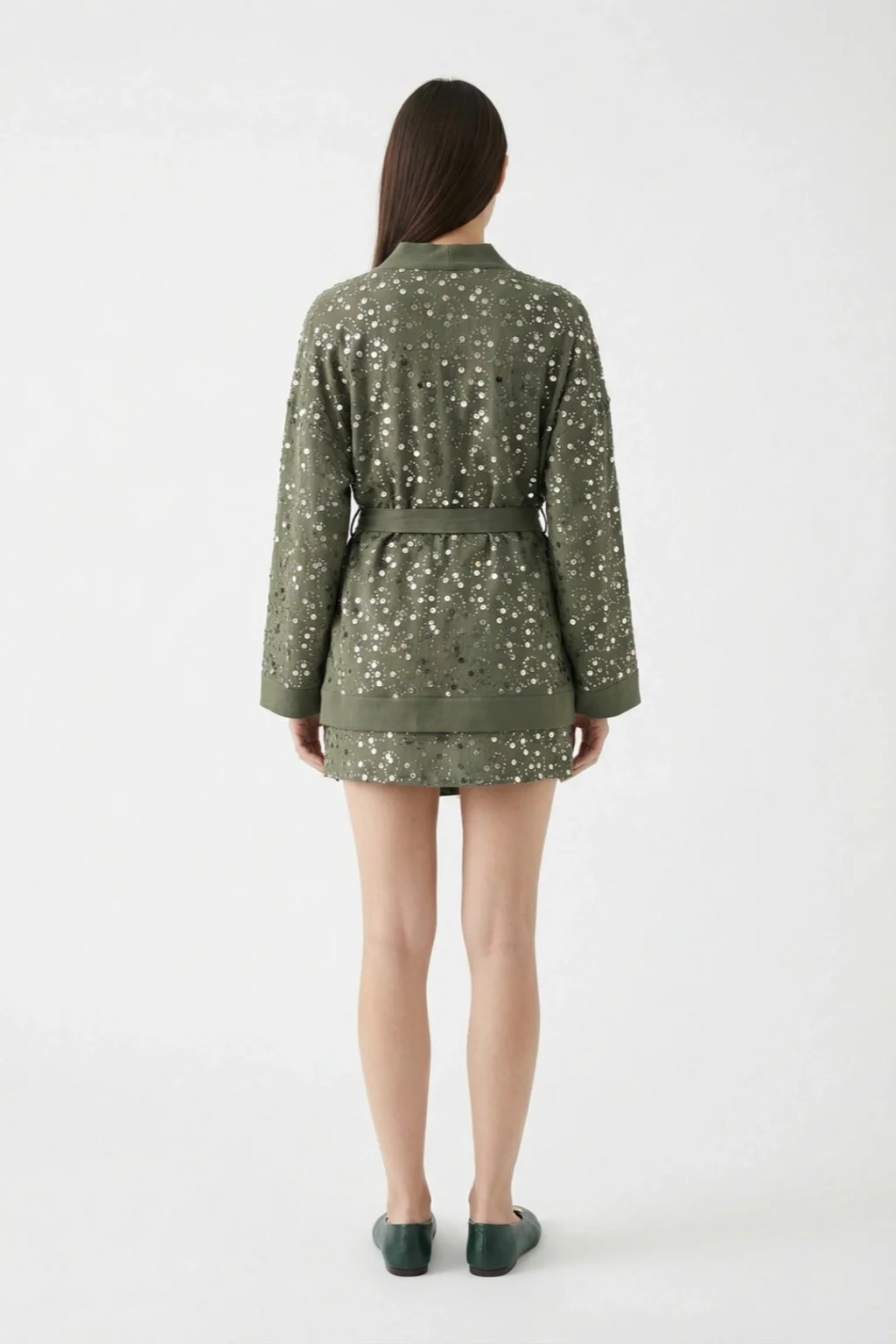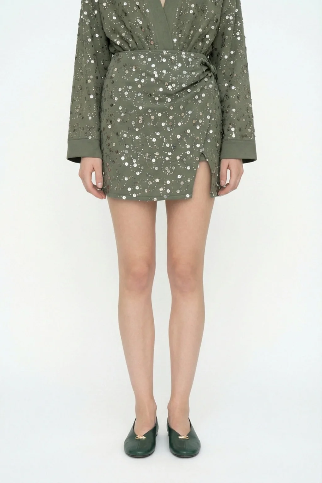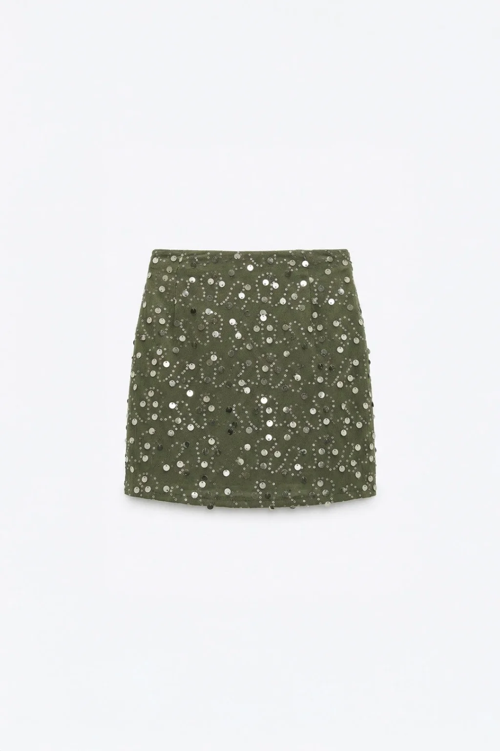 • MYRA'nın şık tasarımı ile öne çıkan Pul İşlemeli Anvelop Mini Etek Haki, tarzınızı yansıtacak!