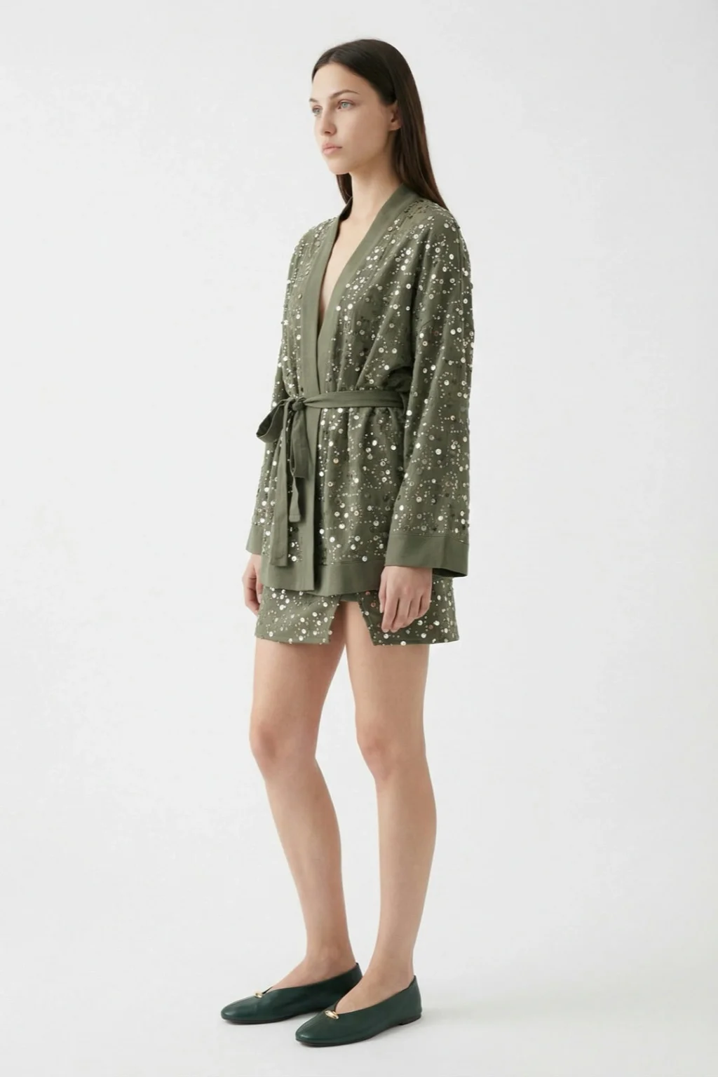 MYRA'nın şık tasarımı ile öne çıkan Pul İşlemeli Anvelop Mini Etek Haki, tarzınızı yansıtacak!
