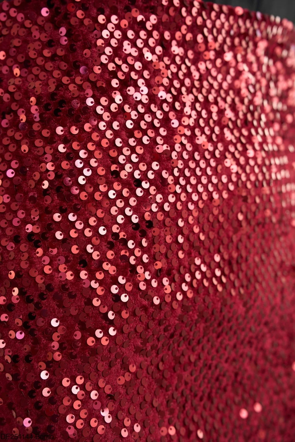 Yandan fermuar kapamalı küçük pullu bordo mini etek.