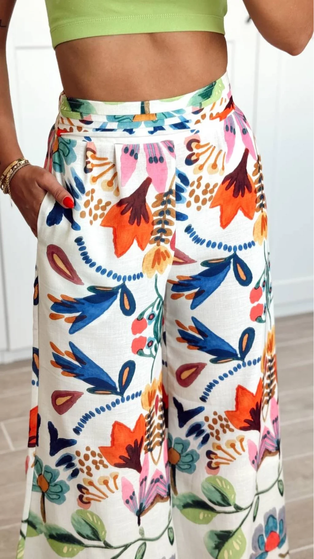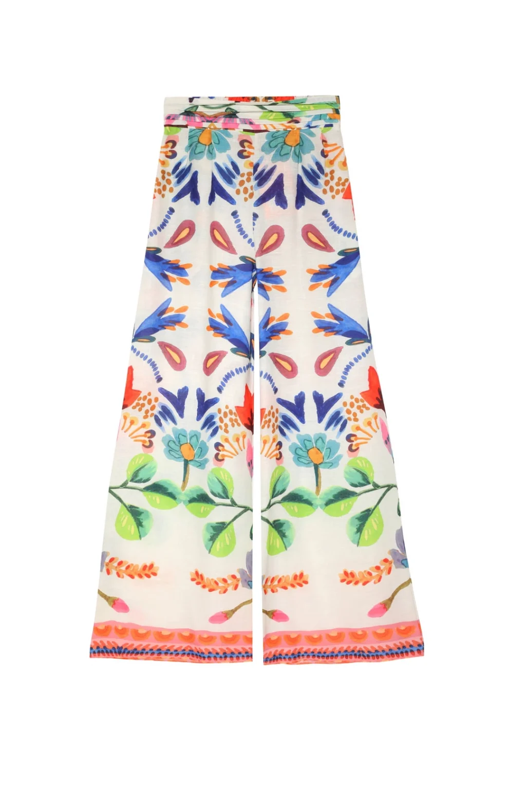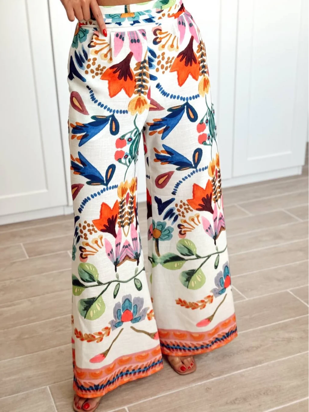 RenkLi Desenli Geniş Paça Pantolon Turuncu