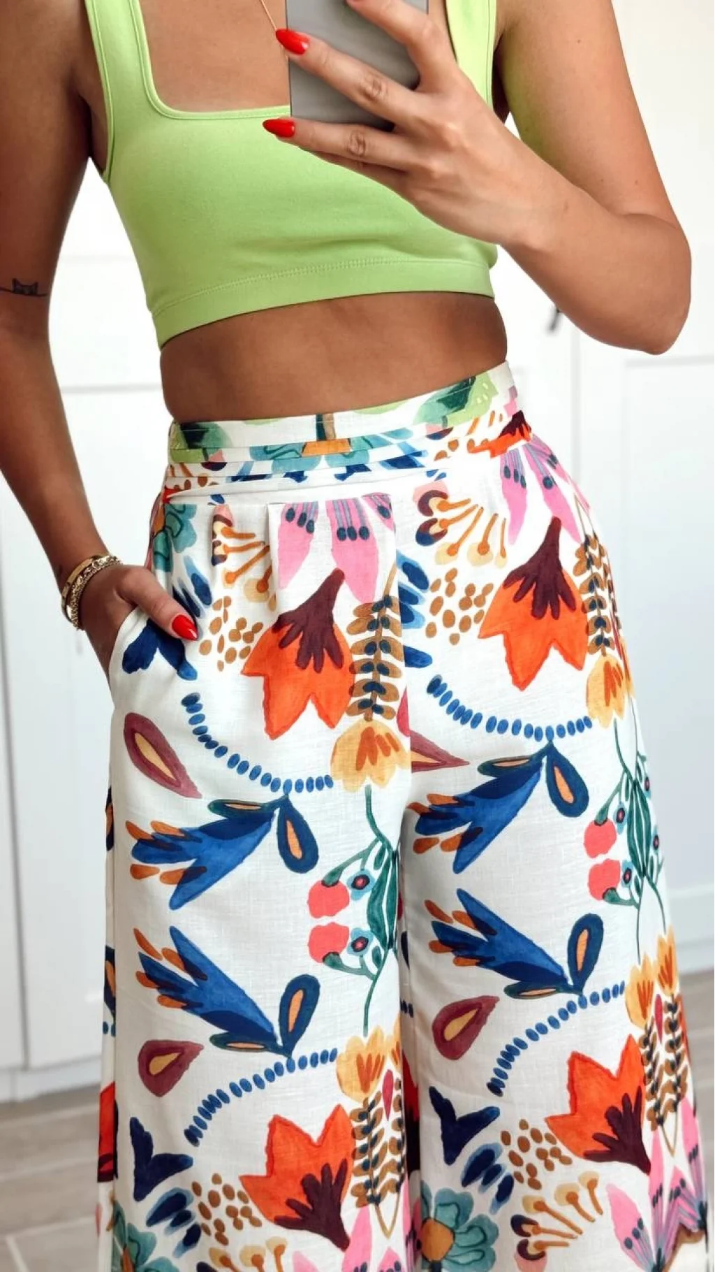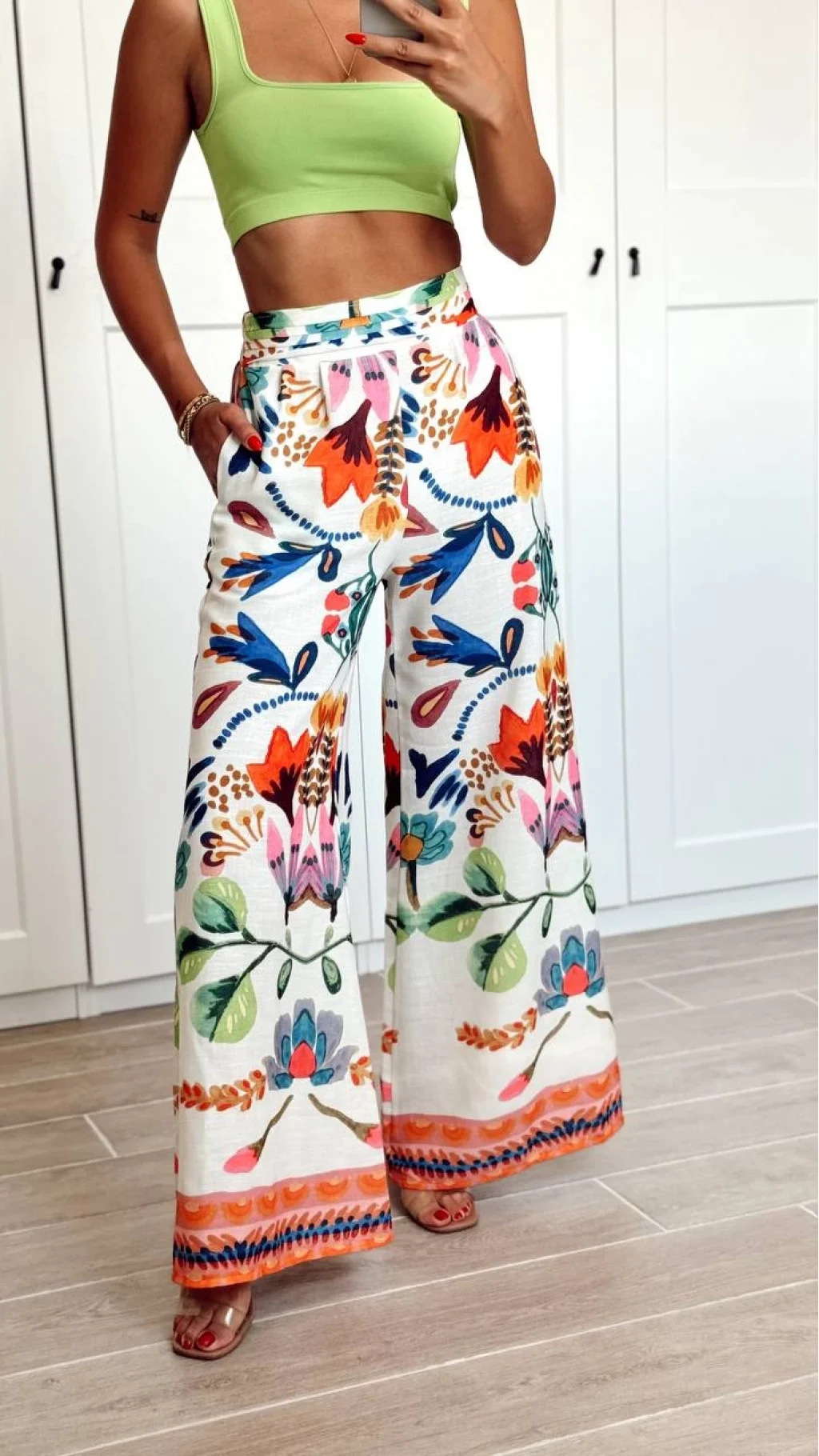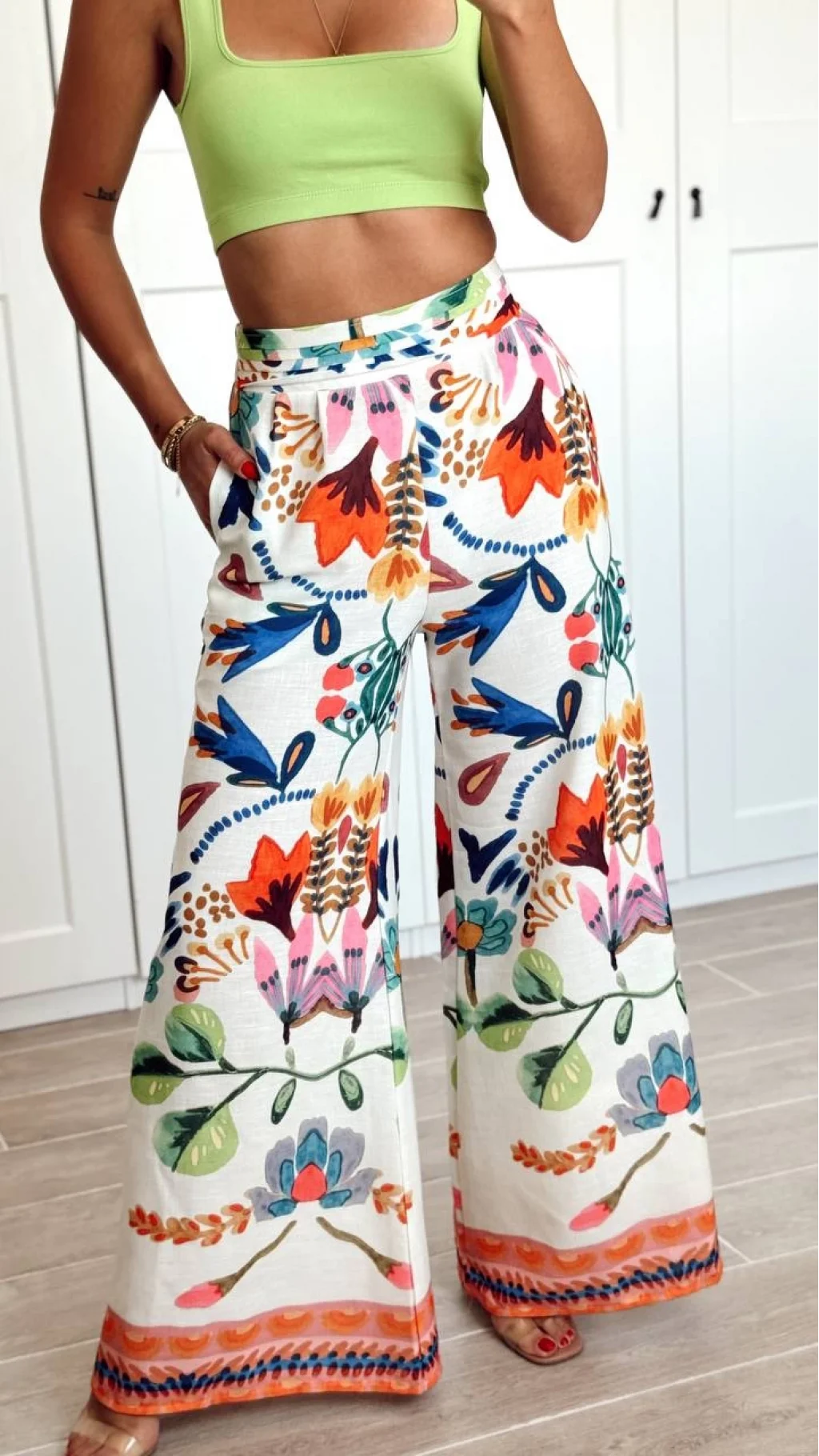 RenkLi Desenli Geniş Paça Pantolon Turuncu