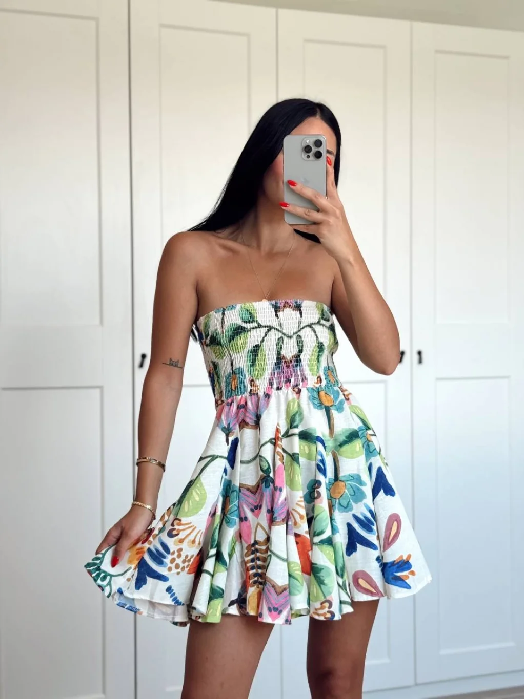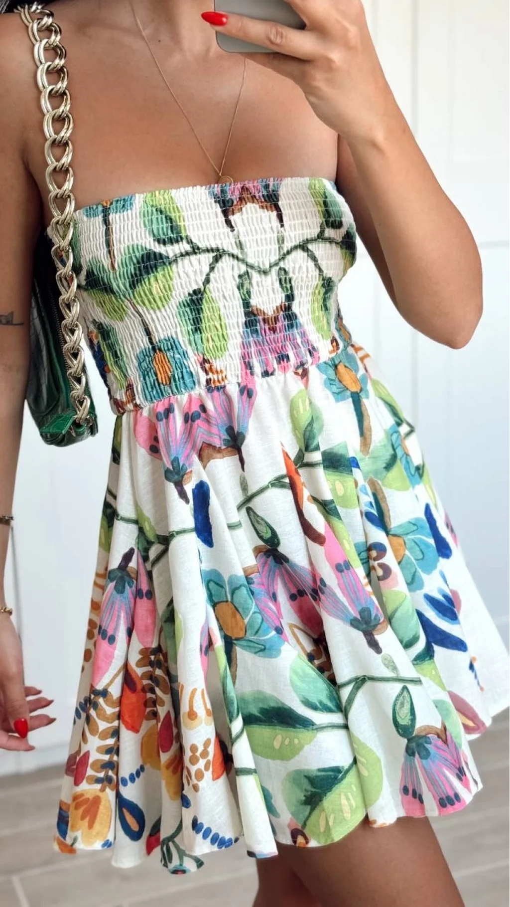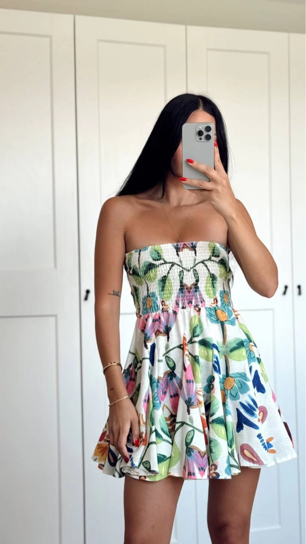 RENKLİ DESENLİ MİNİ BOY ELBİSE