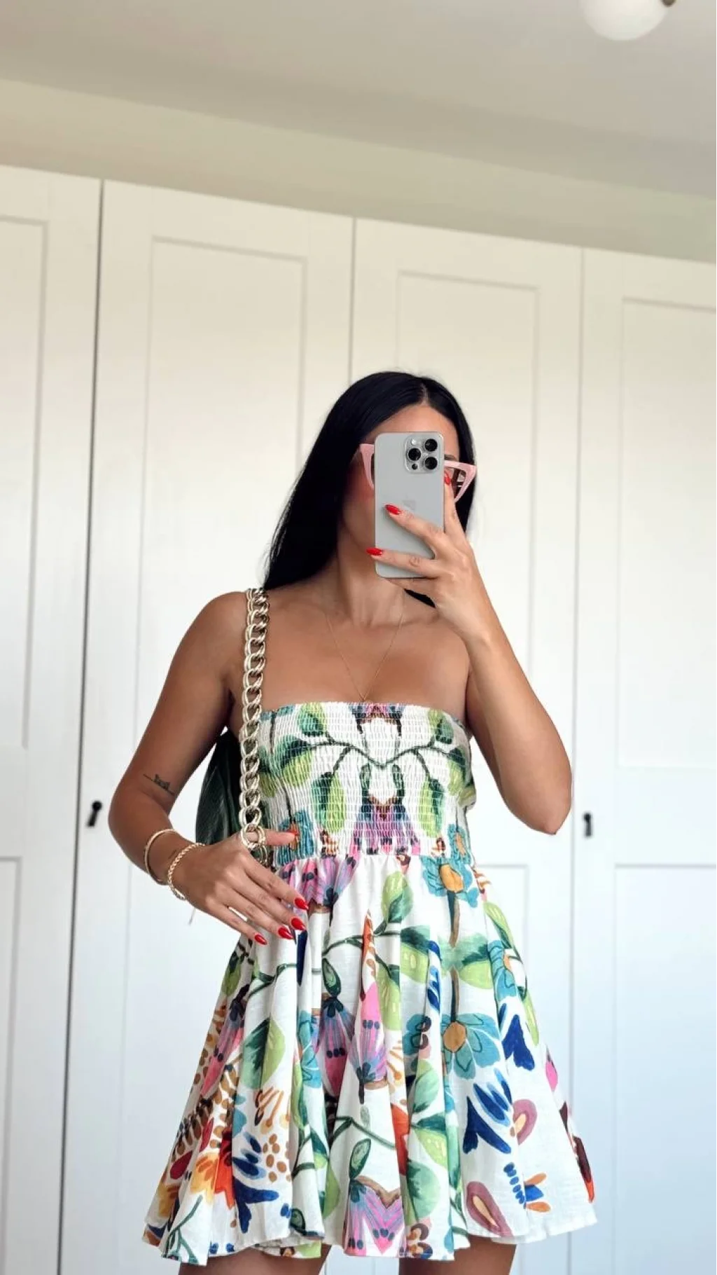 İNCE ASKILI GÖĞÜS KISMI LASTİKLİ ELBİSE