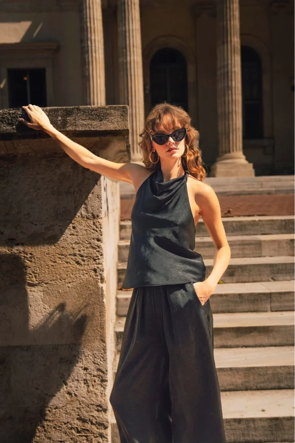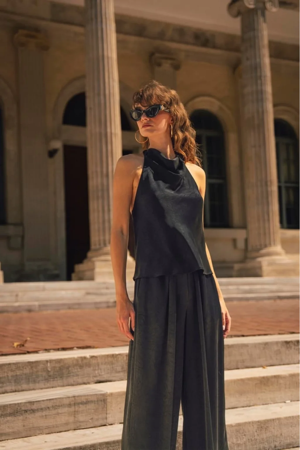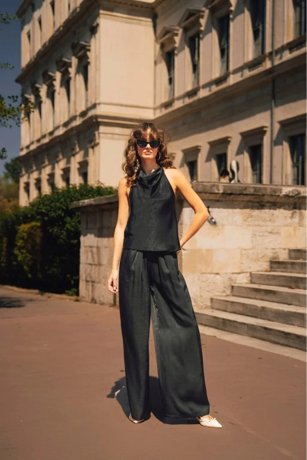 MYRA'nın şık ve şıklığıyla ön plana çıkan Saten Bluz Pantolon İkili Takımı siyah rengiyle göz kamaştırıyor.
