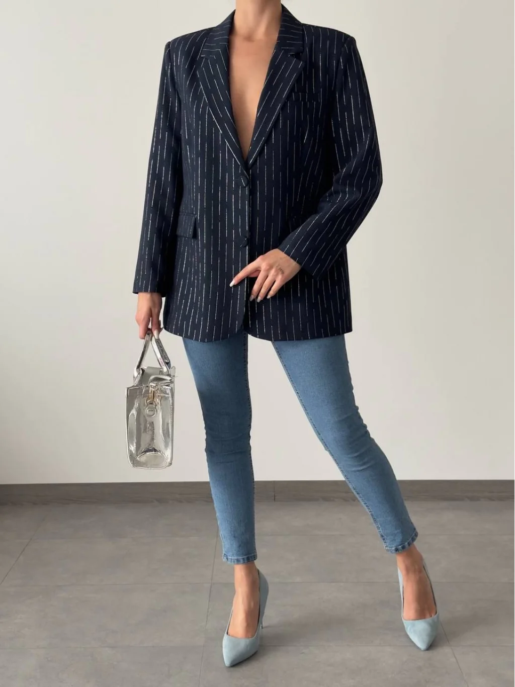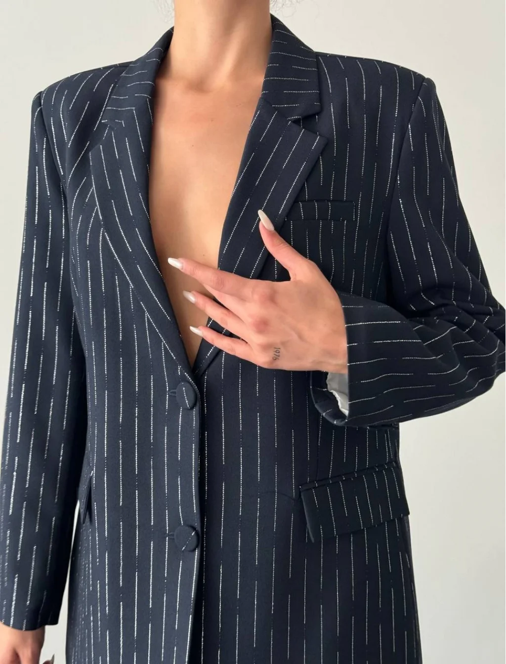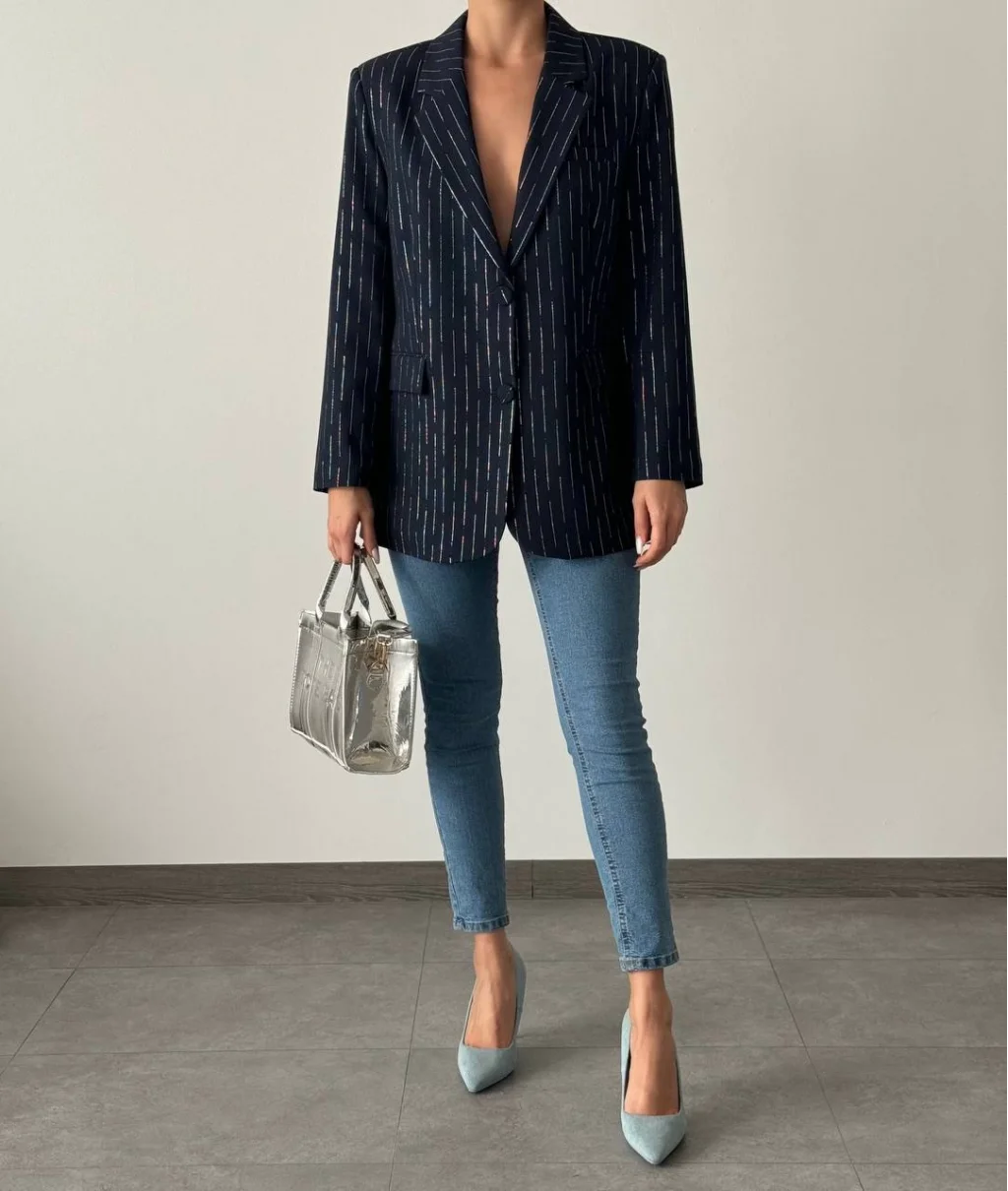 SİM ÇİZGİ DETAY ASTARLI BLAZER CEKET LACİVERT