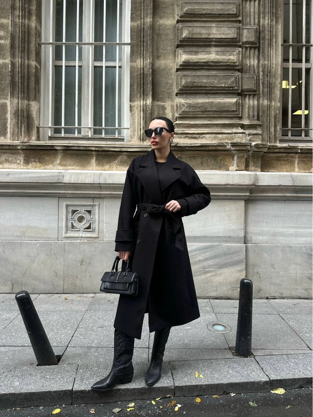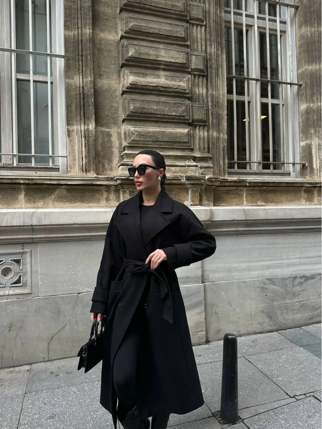 MYRA Siyah Kuşaklı Kaşe Yün Kaban, şıklığı ve sıcaklığı bir arada sunar.