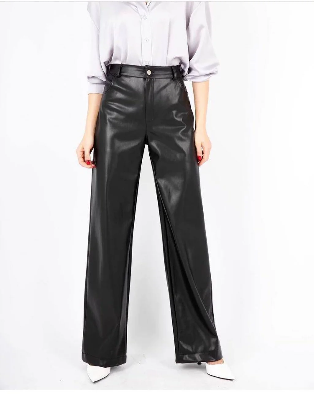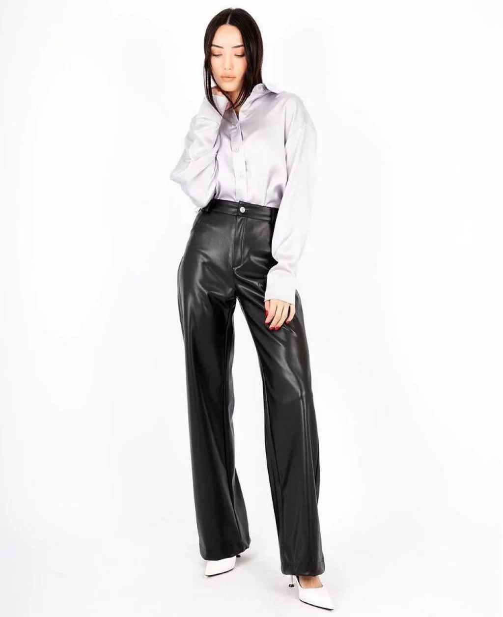 SİYAH TEK DÜĞME DERİ PANTOLON