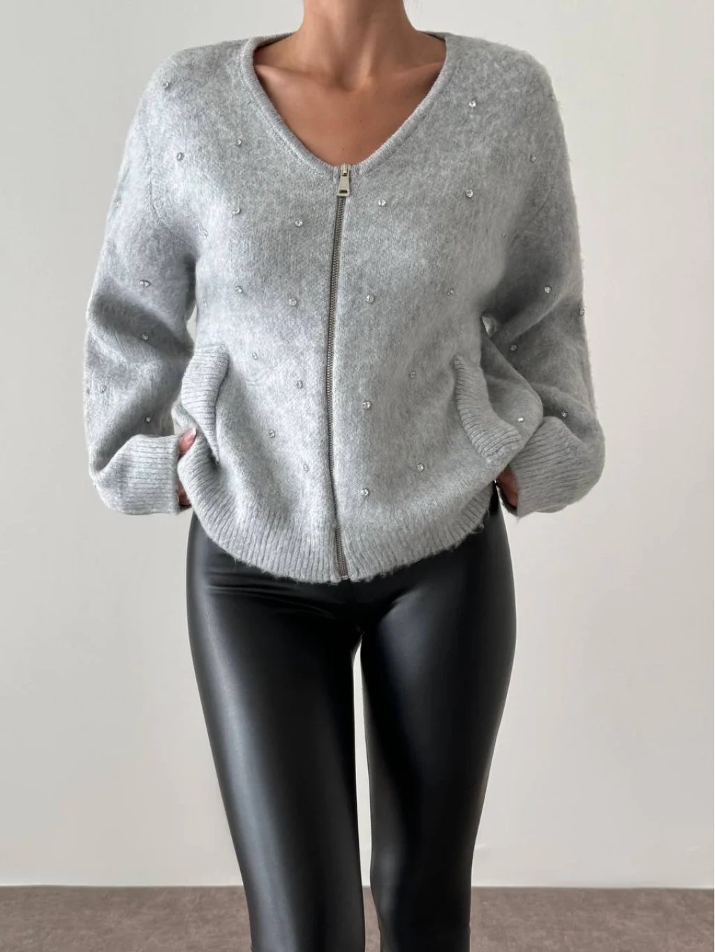 TAŞ DETAY FERMUARLI HIRKA GRİ