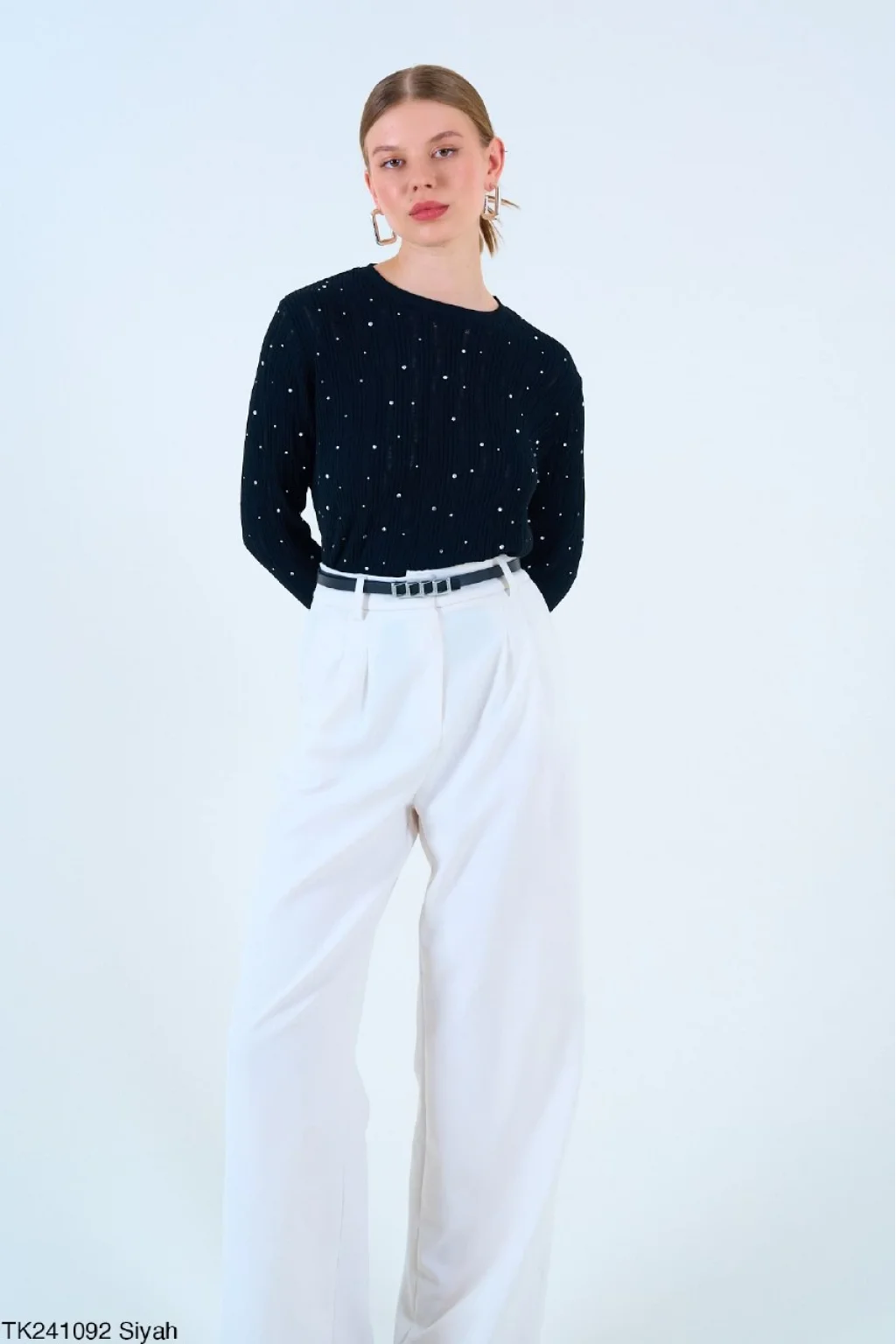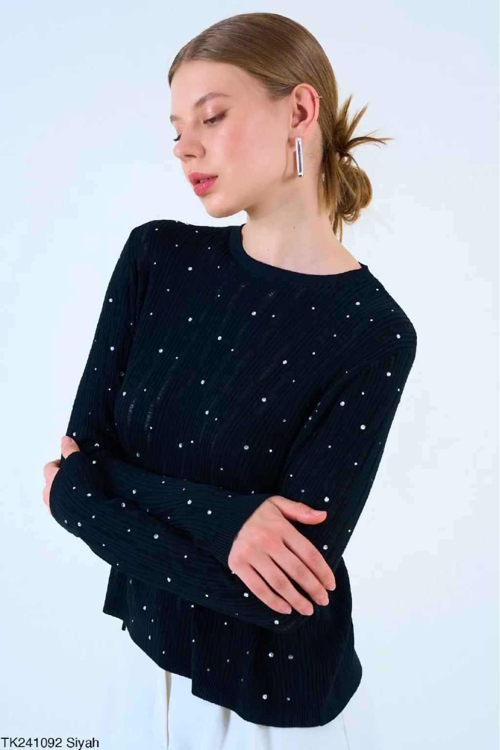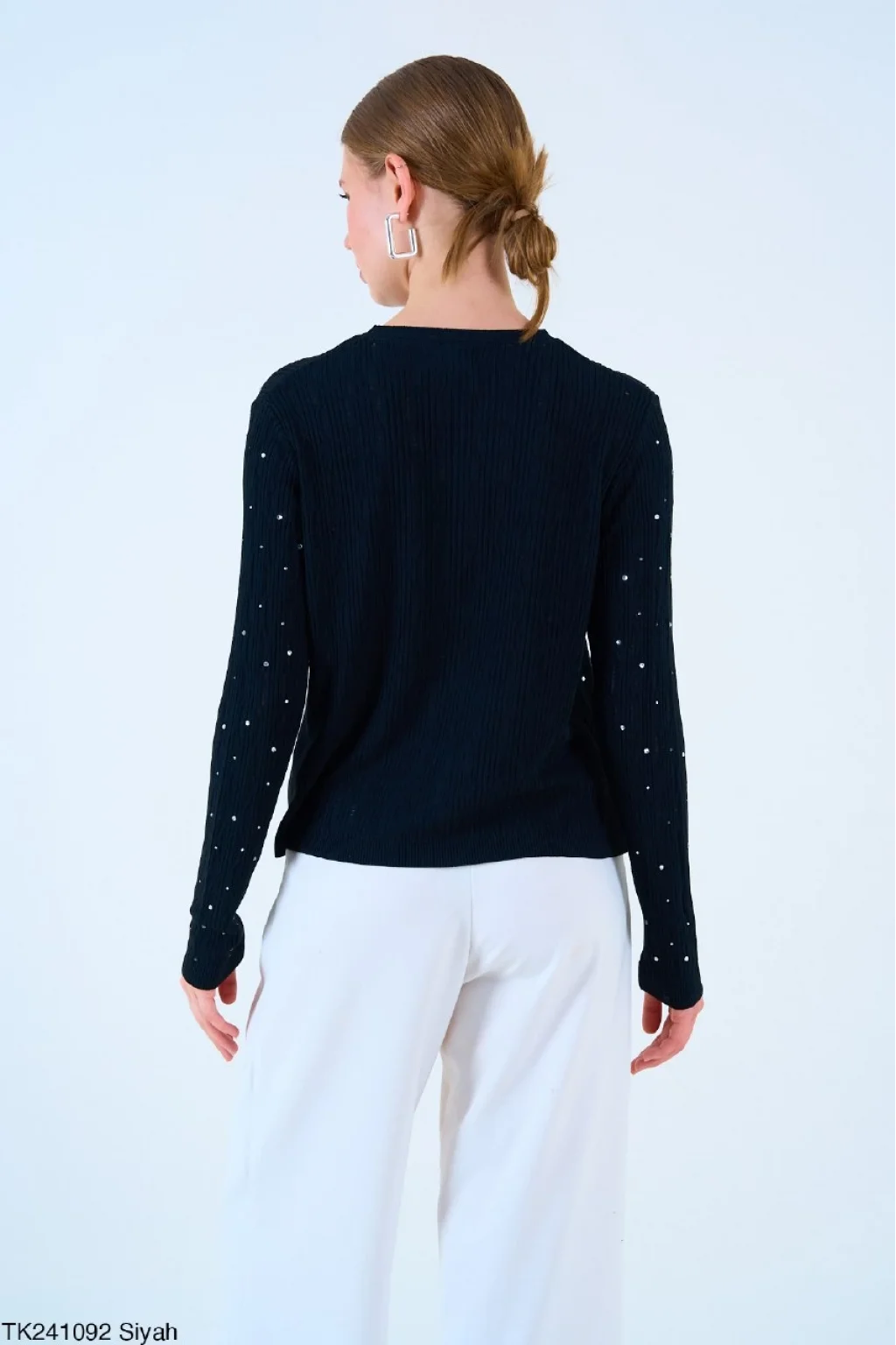 Taşlı Triko Siyah İnce Kazak
