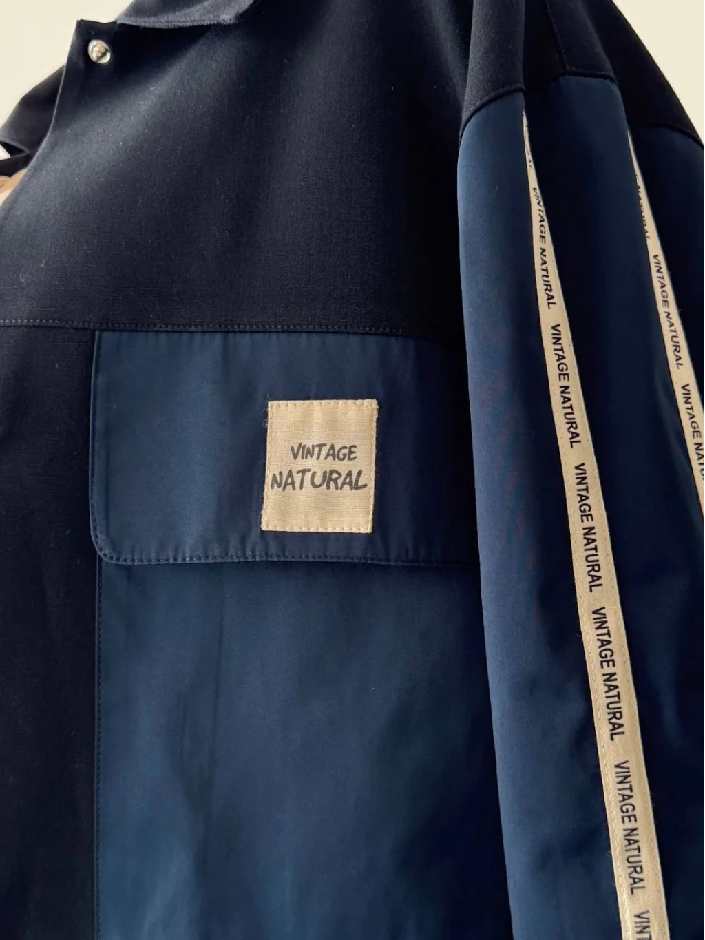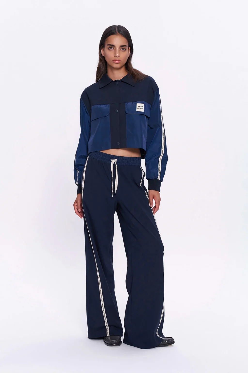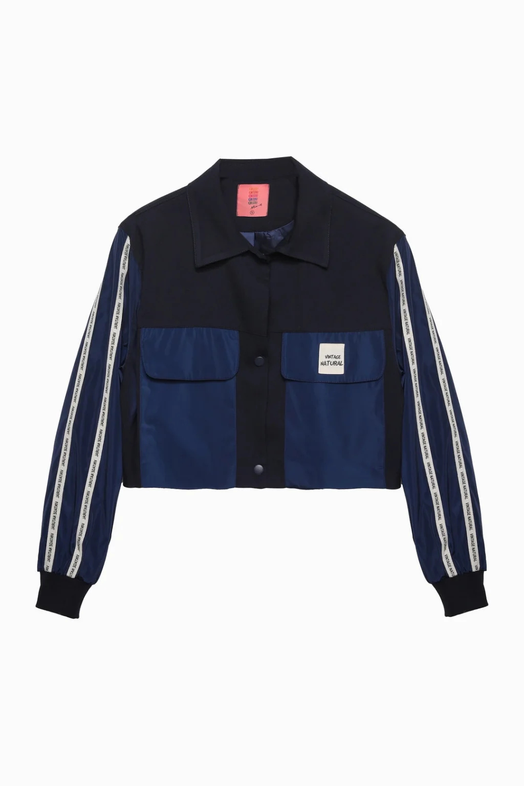 Teknik Kumaş Şerit Detaylı Kısa Ceket Lacivert