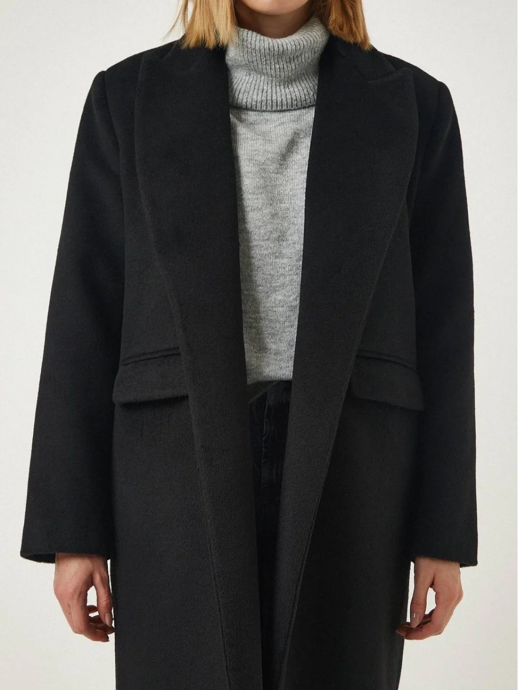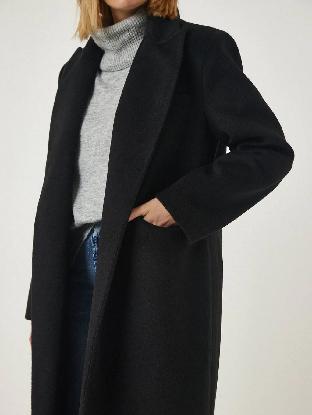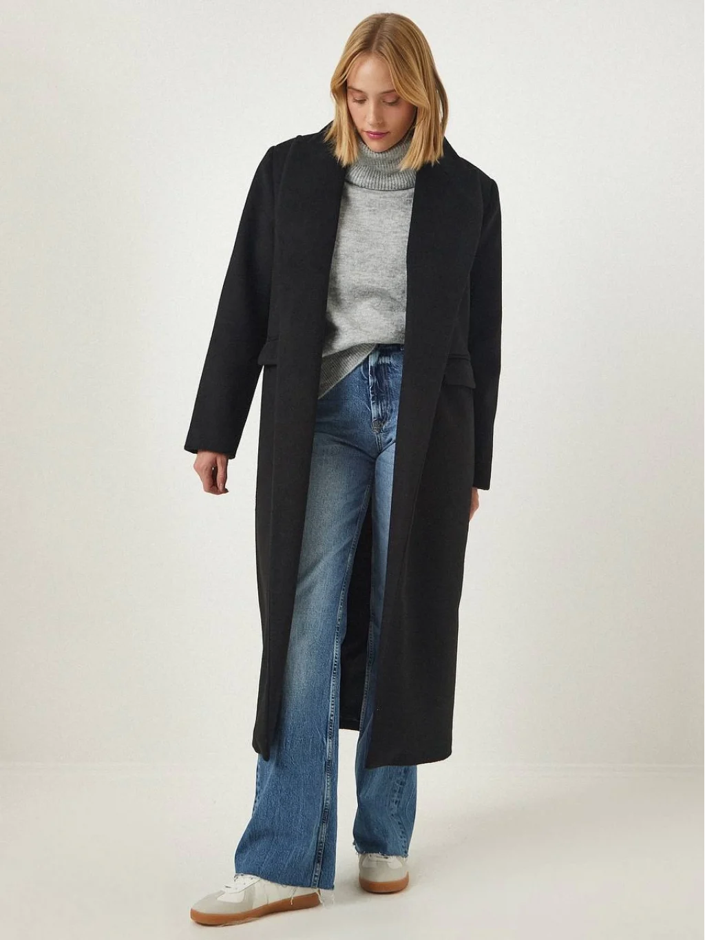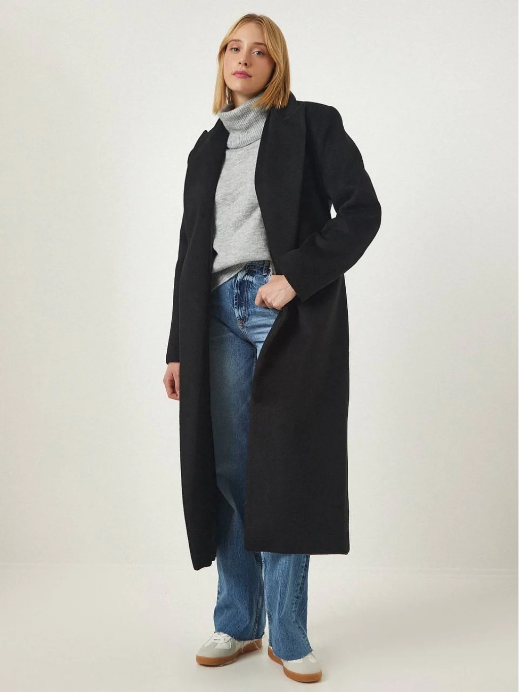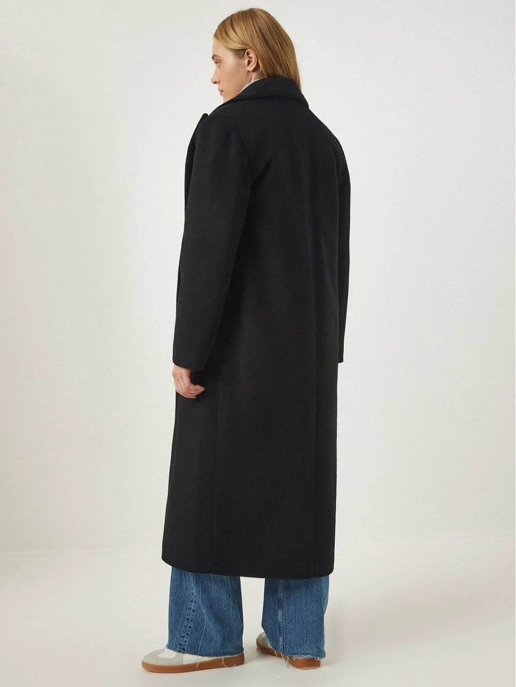 TOKYO YAKALI UZUN YÜN KABAN SİYAH