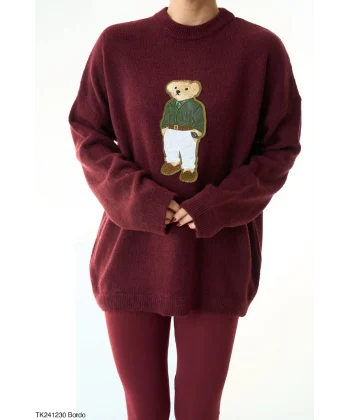 Bisiklet Yaka Yırtmaçlı Kazak Pantolon Triko Takım Bordo
