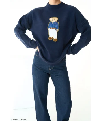 Bisiklet Yaka Yırtmaçlı Kazak Pantolon Triko Takım Haki