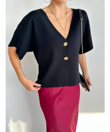 Ters Dikişli Tek Düğmeli Siyah Hırka