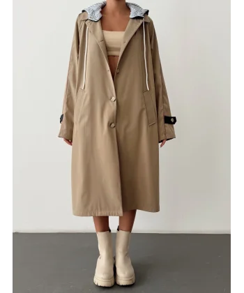 Kemer Detaylı Düğmeli Tüvit Ceket Bej