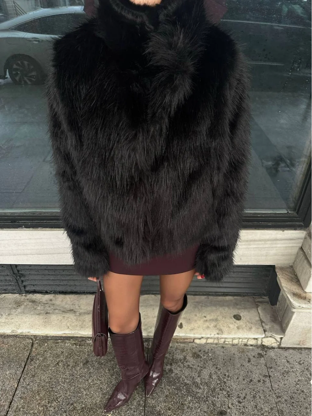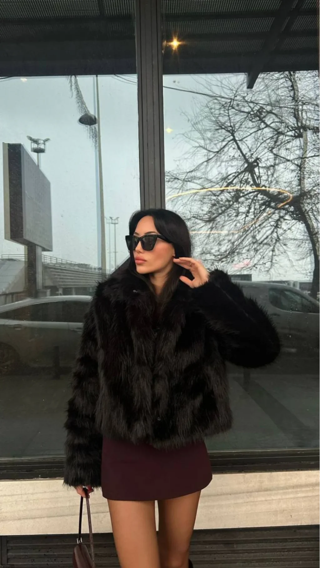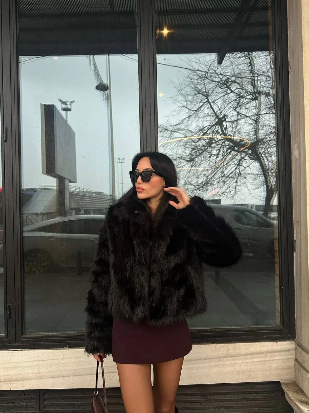 Yan İki Cepli, Ön Çıtçıt Kapamalı Astarlı ,Katlı Yakalı, Kısa Model Uzun Tüylü Premium Kürk