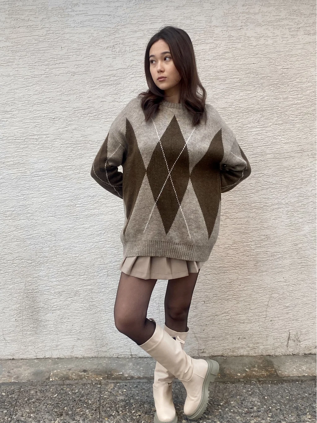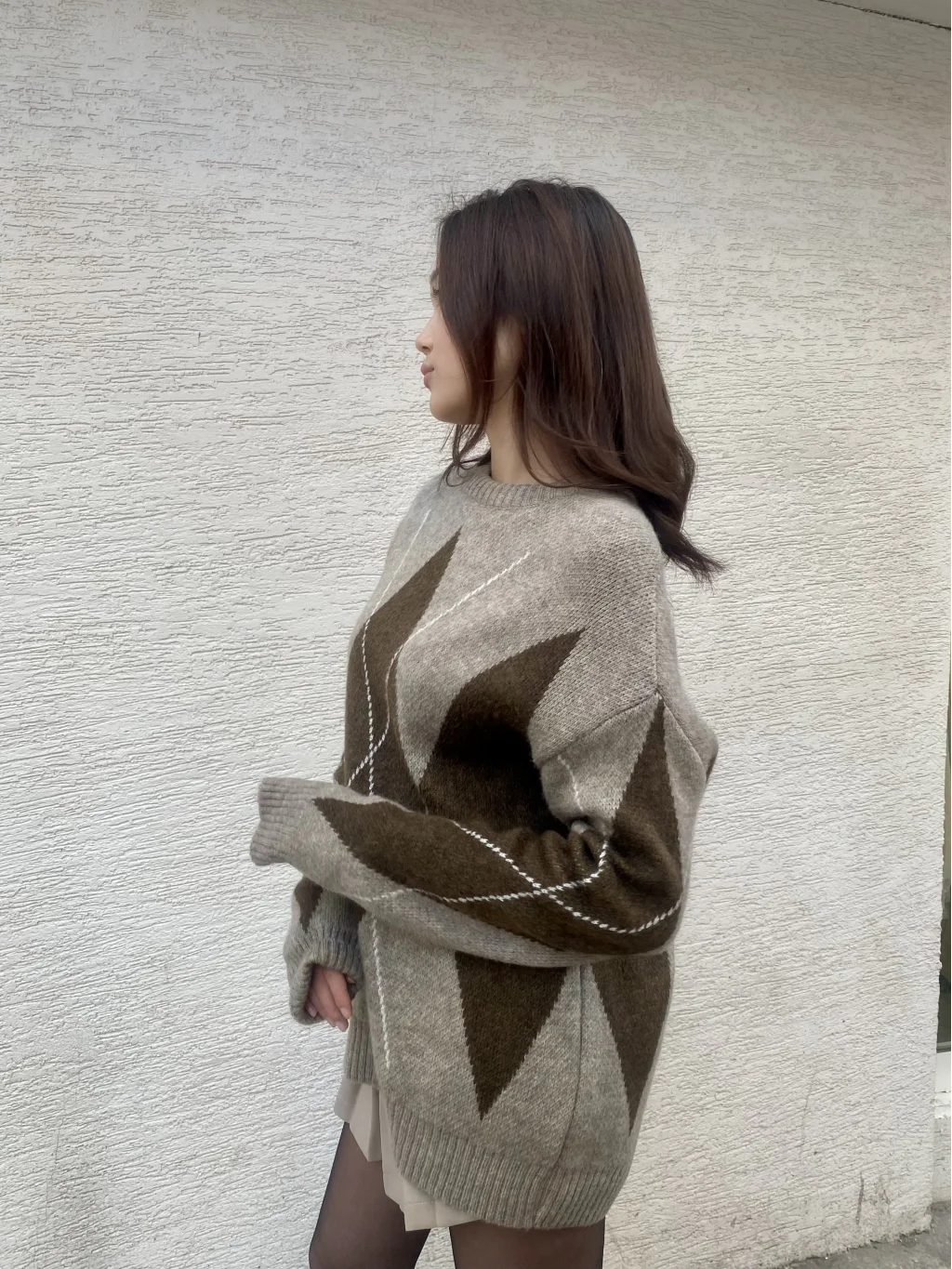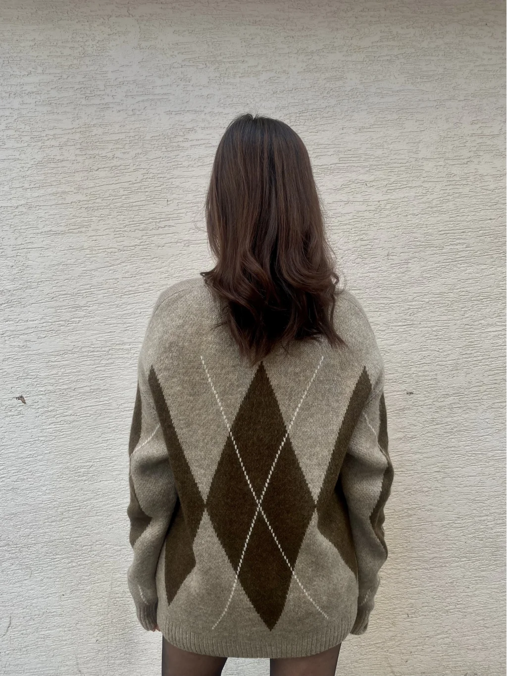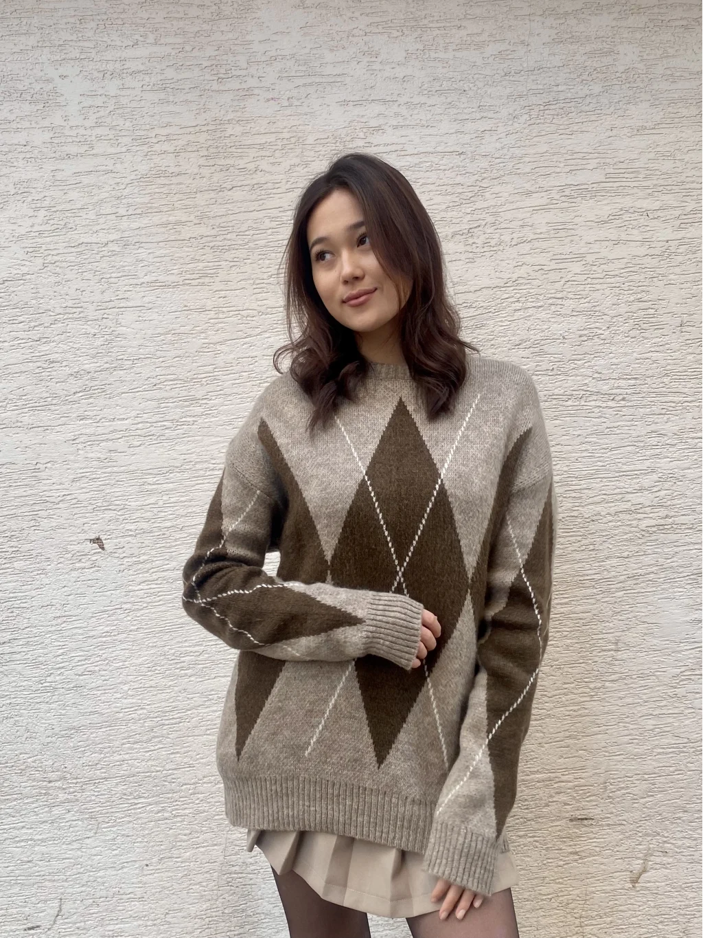 VİZON KAHVERENGİ BAKLAVA DESENLİ KAZAK