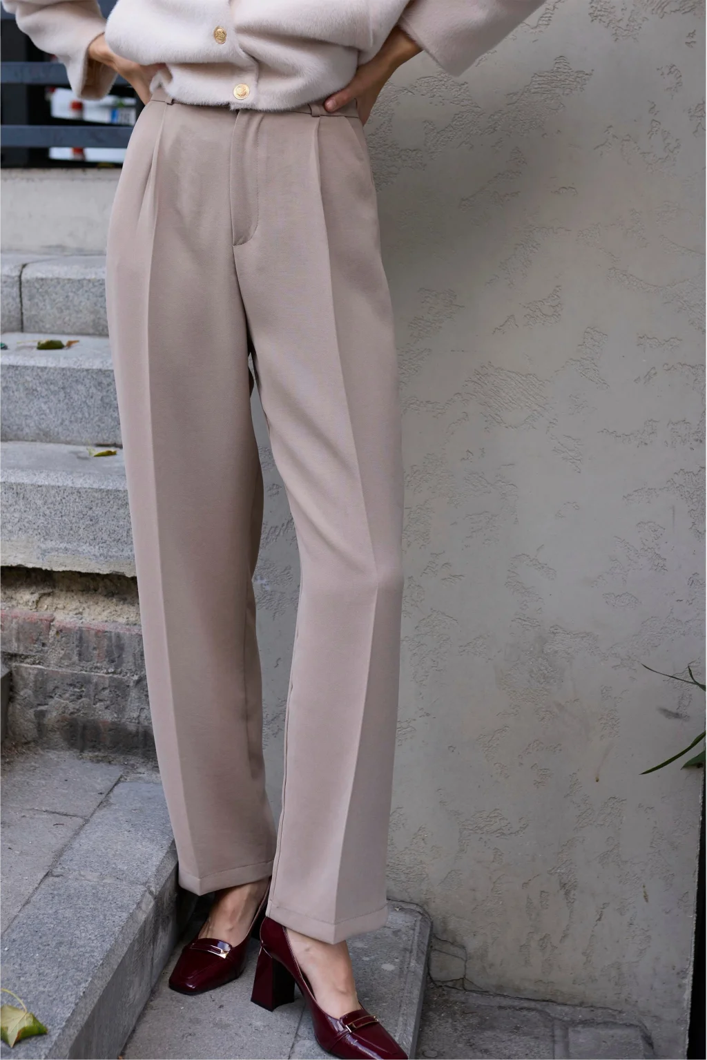 Yüksek Bel, İç Göstermeyen Kumaş, geniş paça vizon palazzo pantolon.