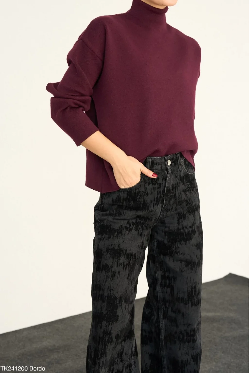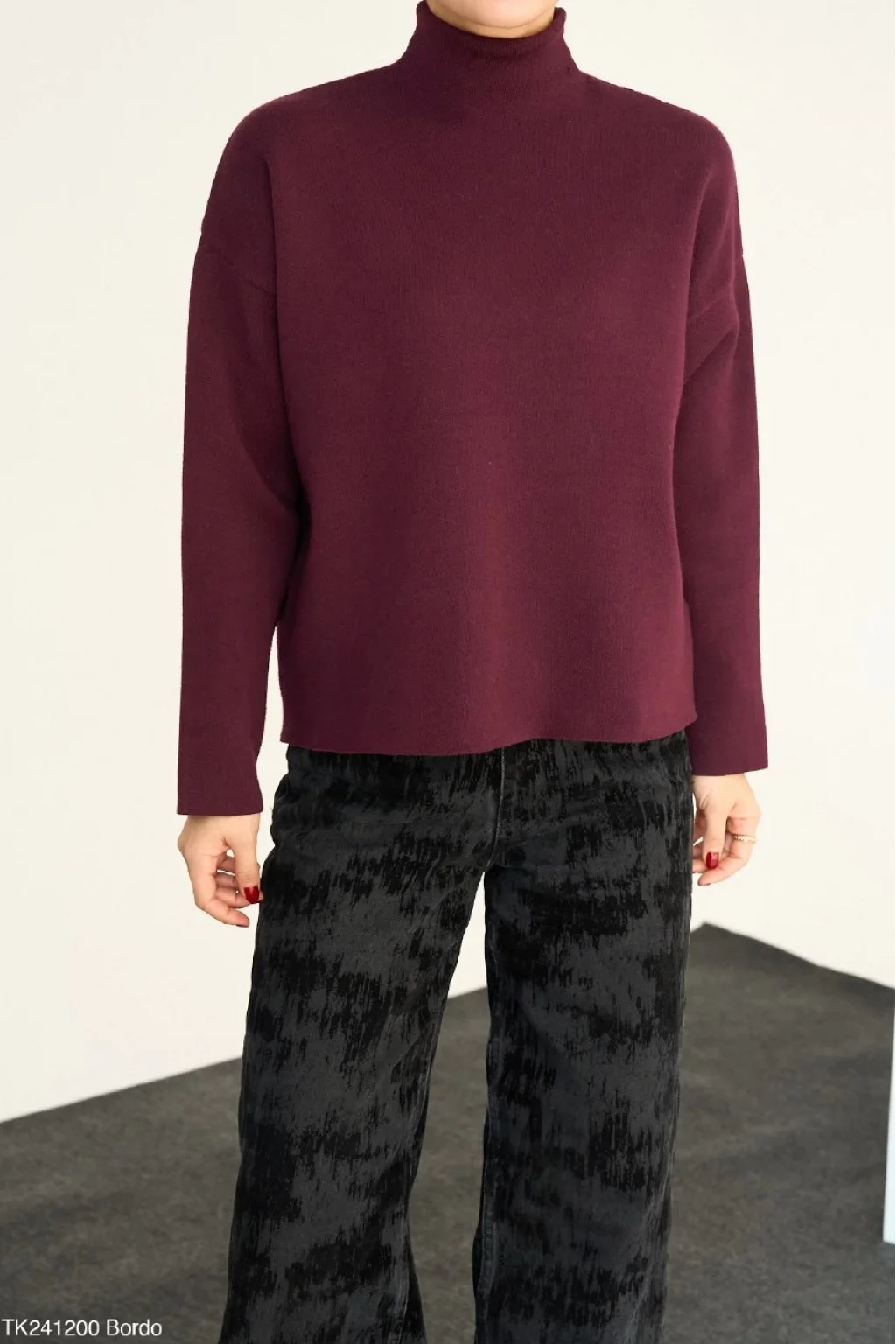 Yarım Balıkçı Yaka Bordo Triko Kazak