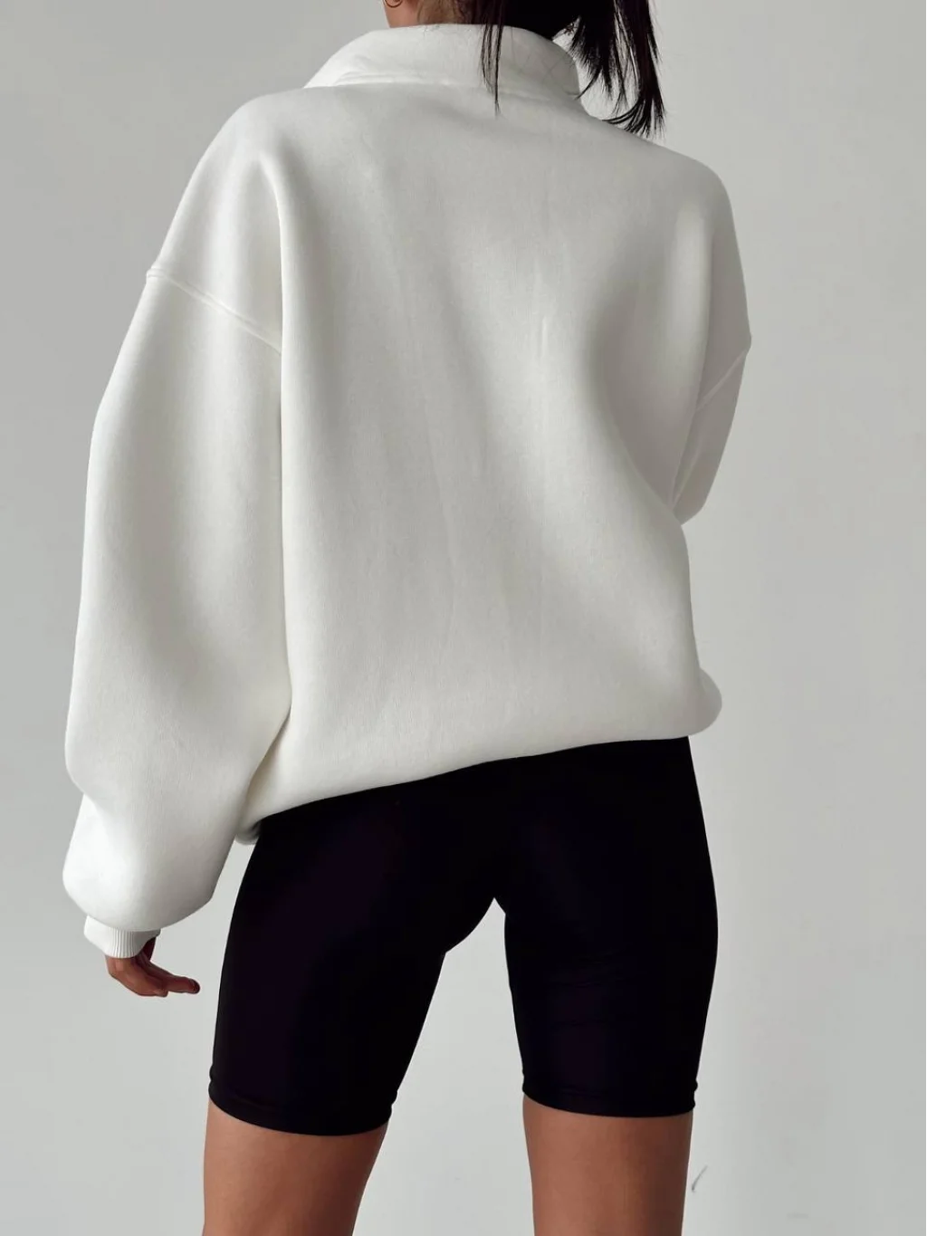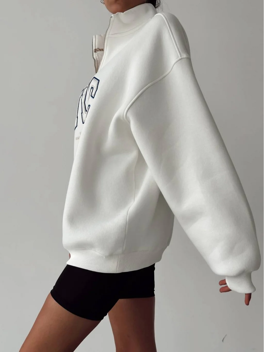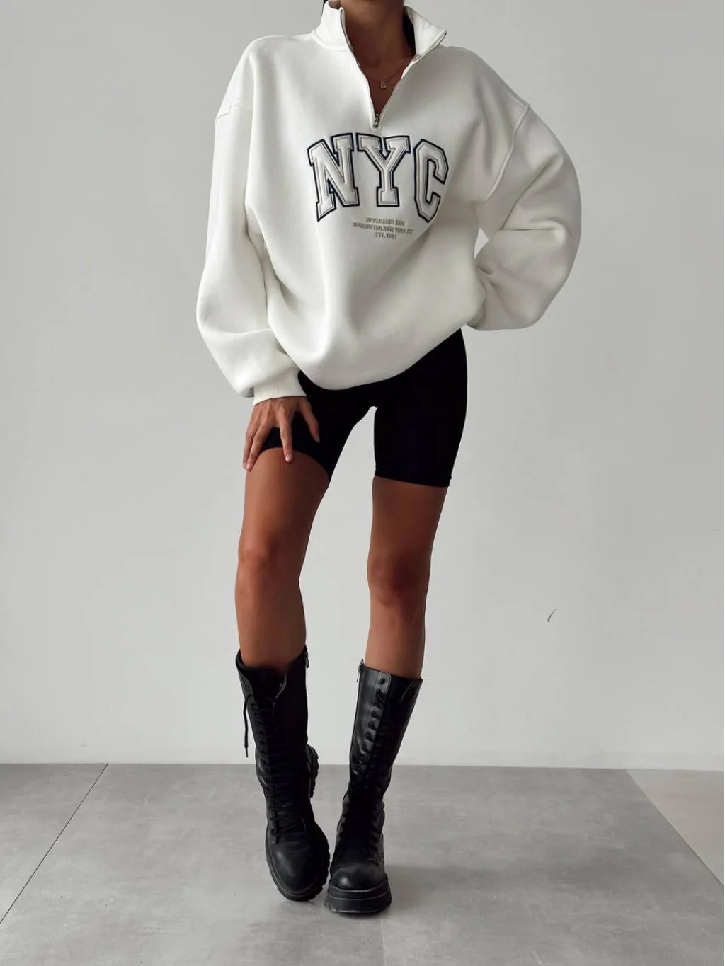 NYC Baskılı Fermuarlı Beyaz Sweatshirt