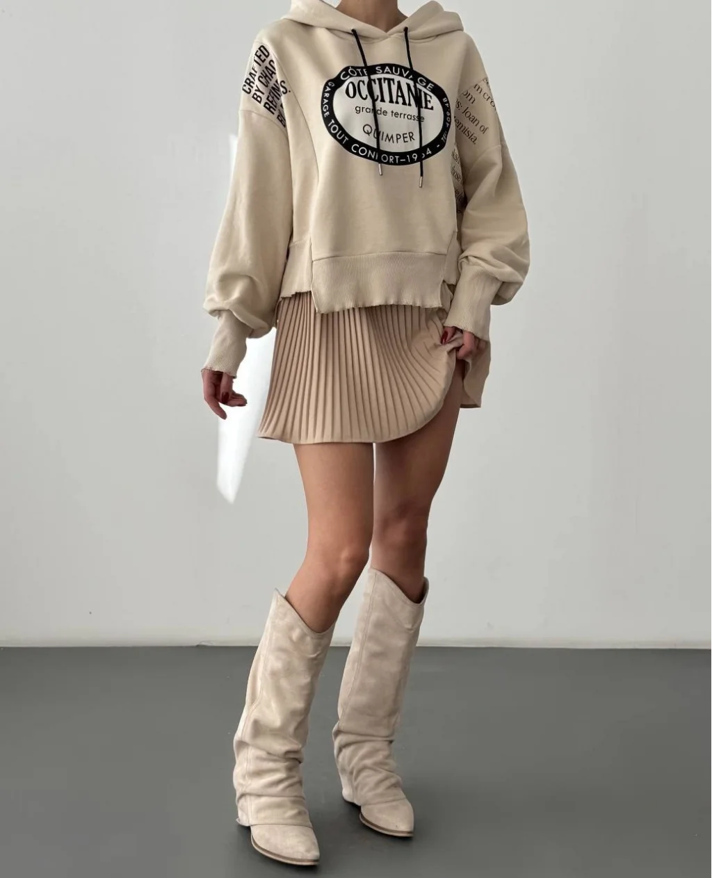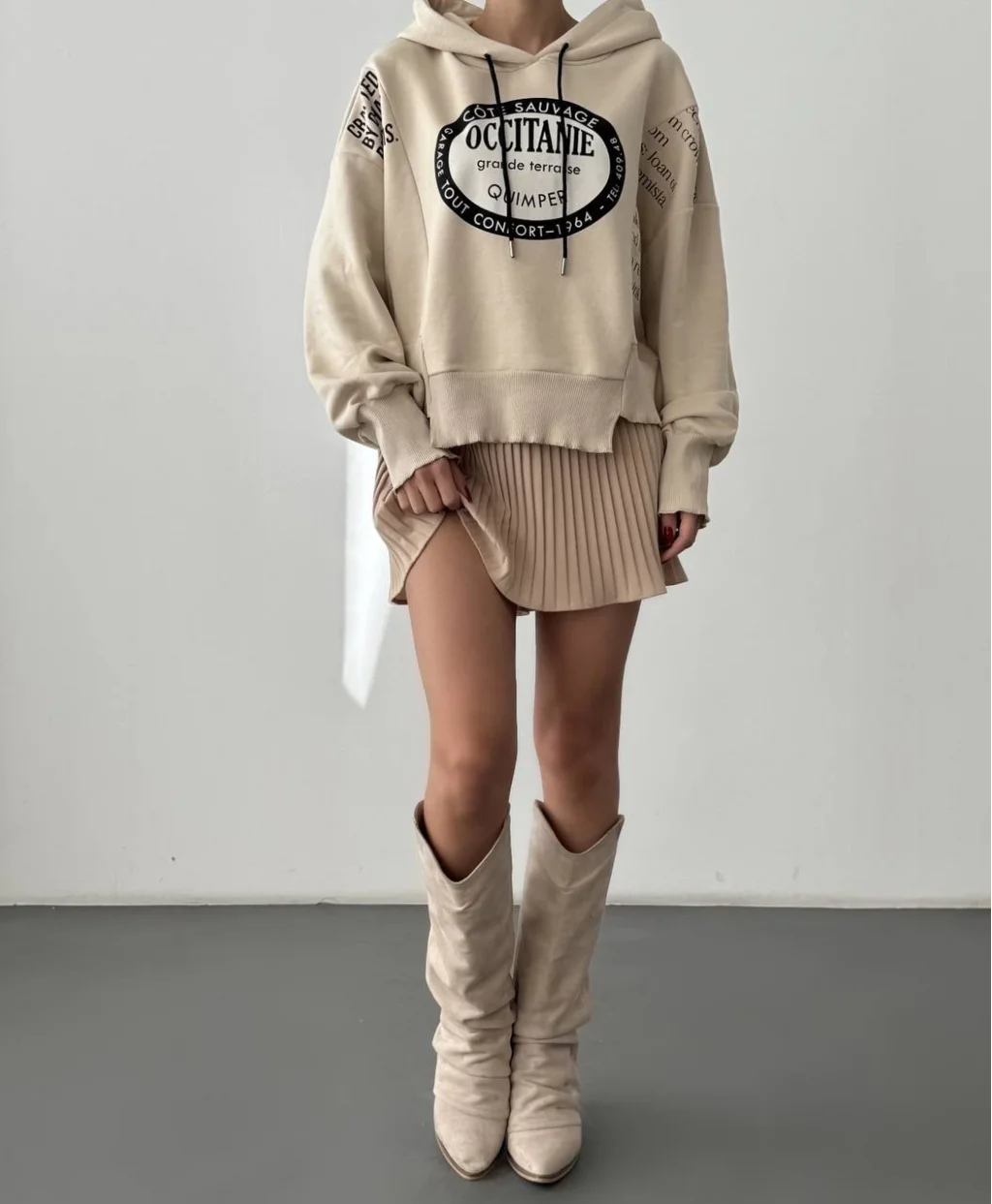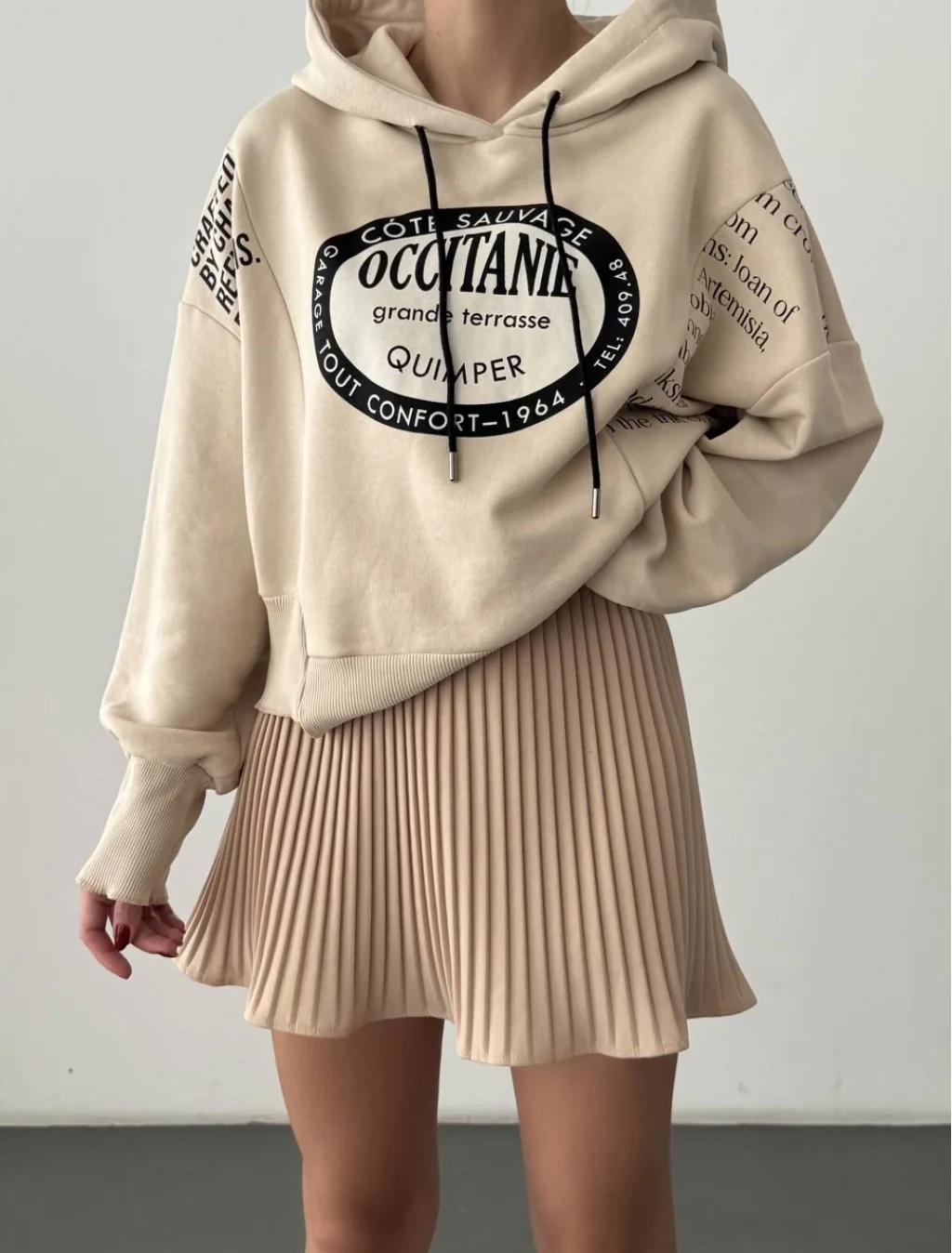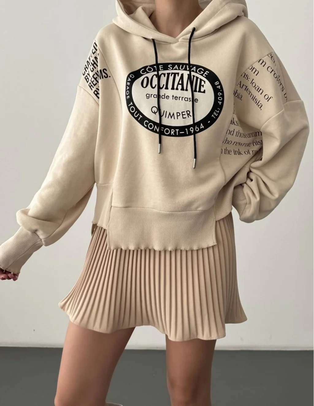 • MYRA Yırtık Detaylı Yazı Baskılı Oversize Sweatshirt Taş rengiyle tarzınızı mükemmel tamamlar.