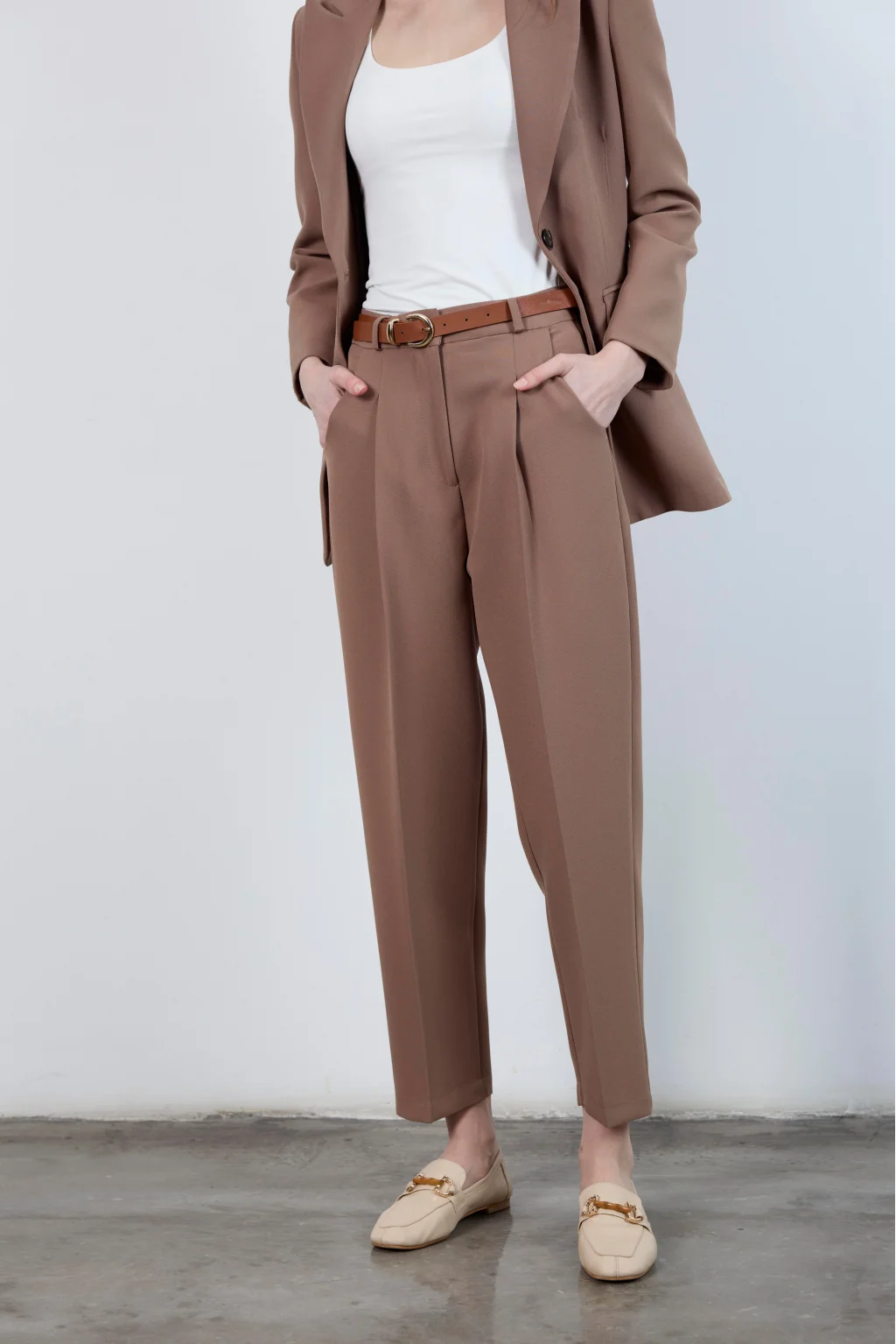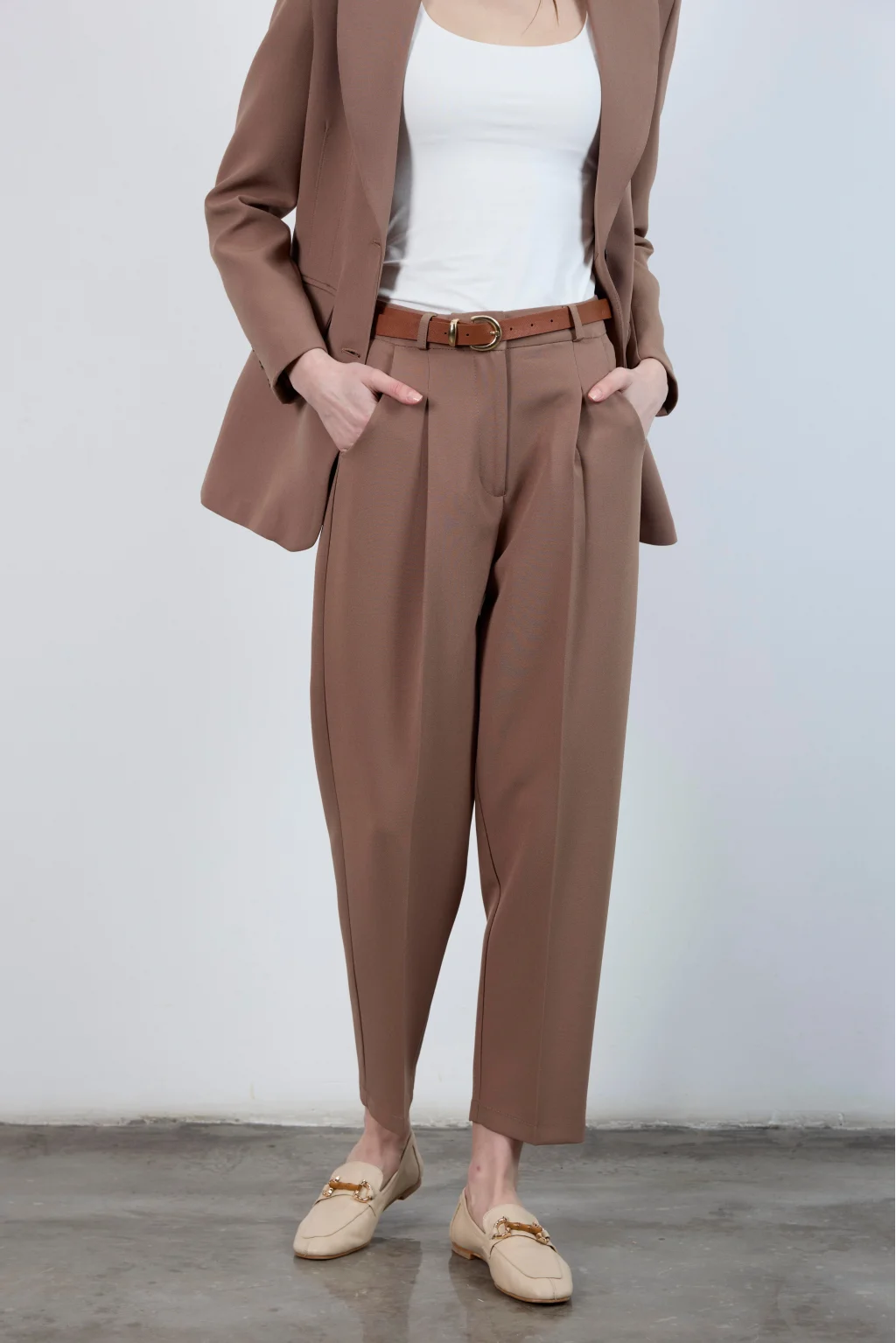 Yüksek Bel Kemerli Havuç Pantolon Açık Kahve