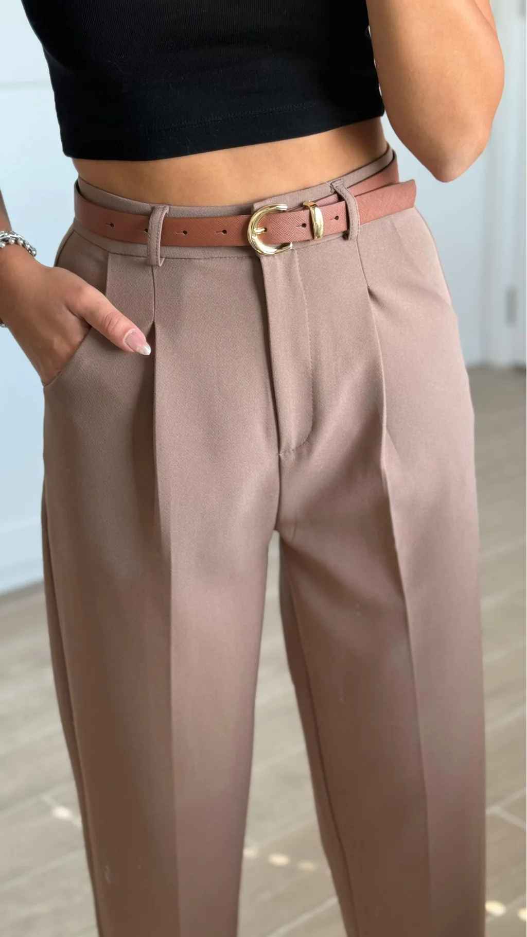 • MYRA Yüksek Bel Kemerli Havuç Pantolon Kahverengi - Şıklığı ve rahatlığı bir arada sunar.