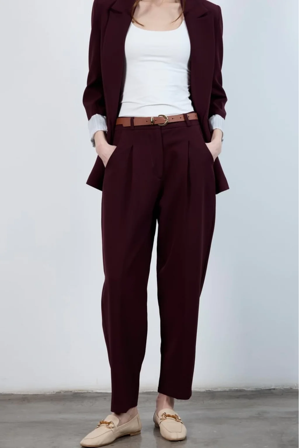 Yüksek Bel Kemerli Havuç Pantolon Mürdüm
