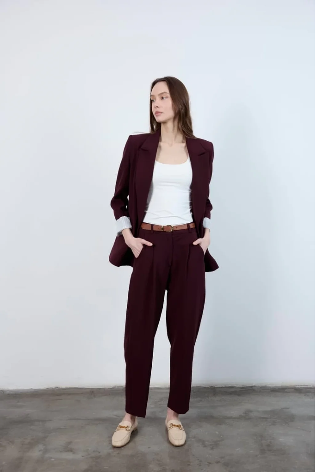 Kemer Detaylı Havuç Paça Yüksek Bel Mürdüm Pantolon