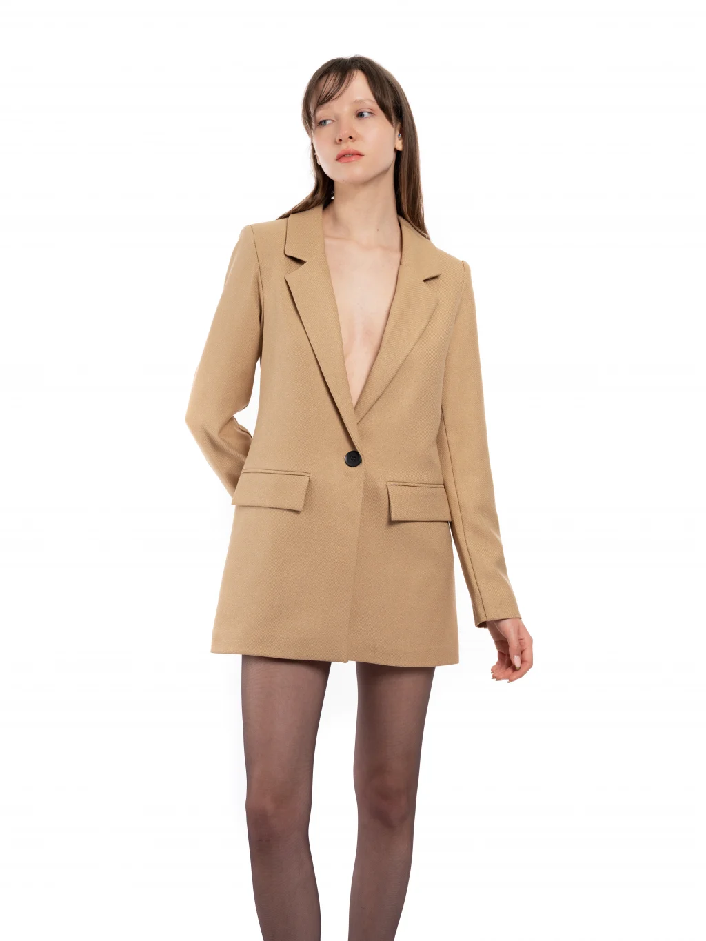 Ön tek düğme kapamalı,iç astarlı tam kalıp kahverengi blazer ceket