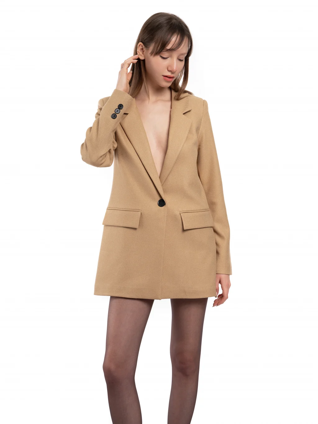 Yün Efekt Düğmeli Kahverengi Kahve Blazer Ceket