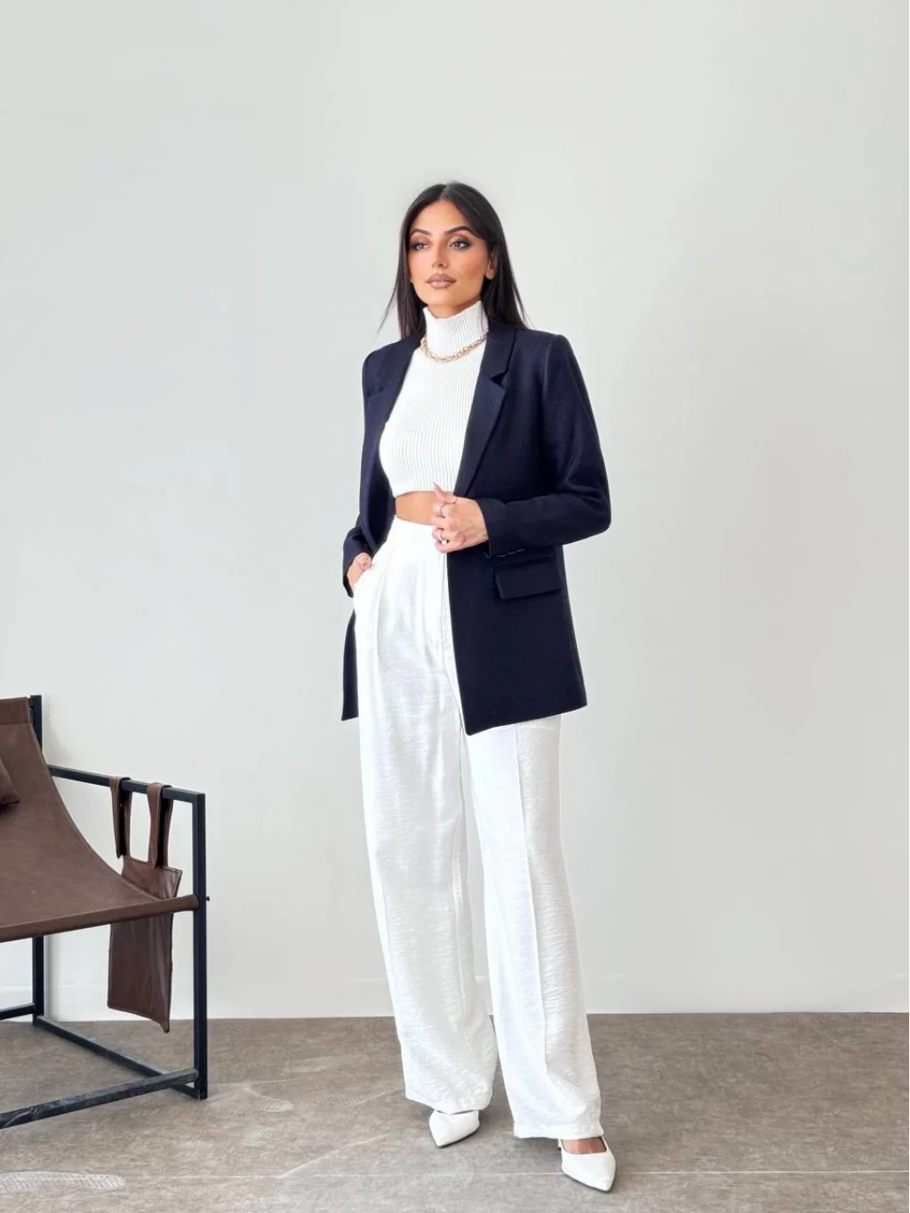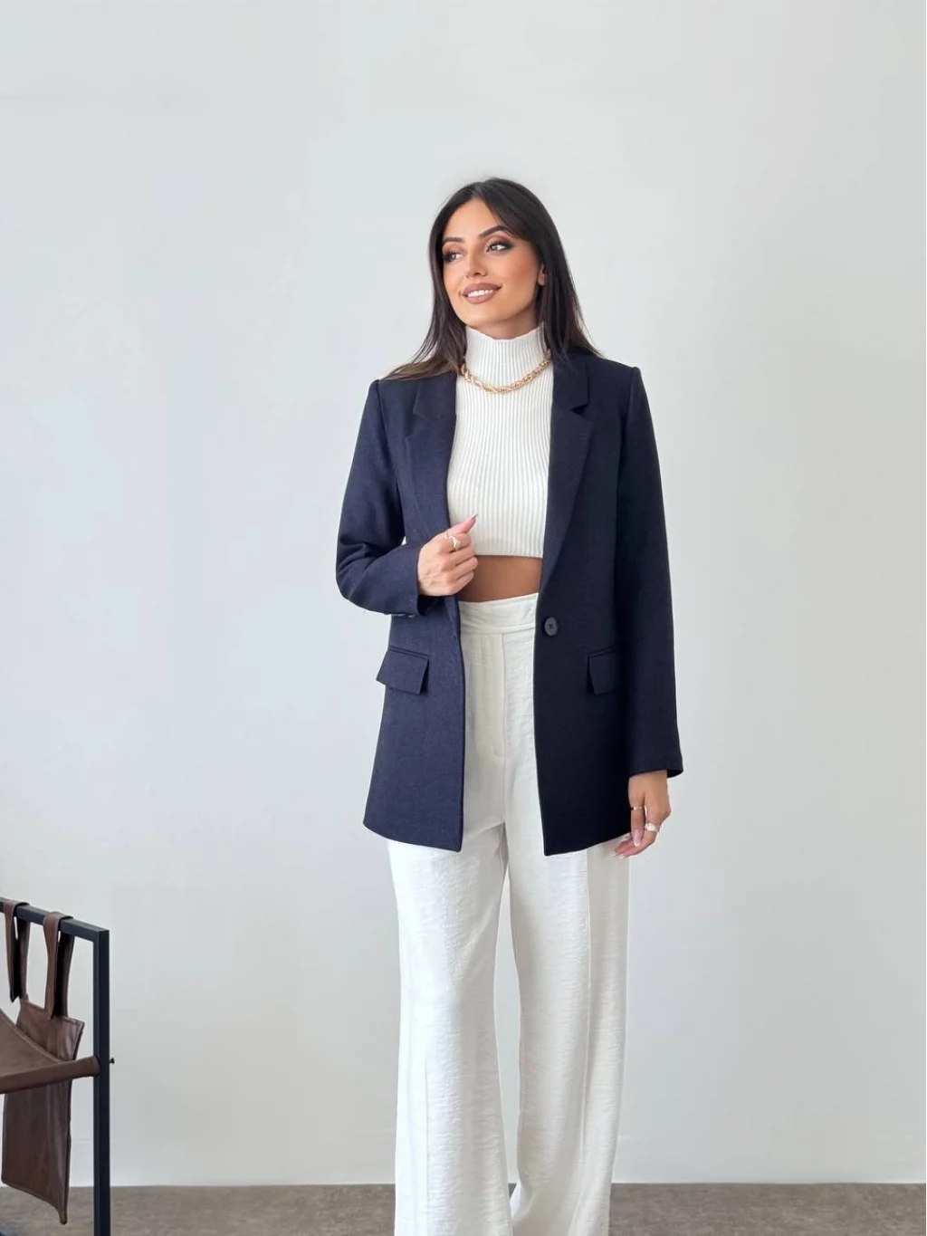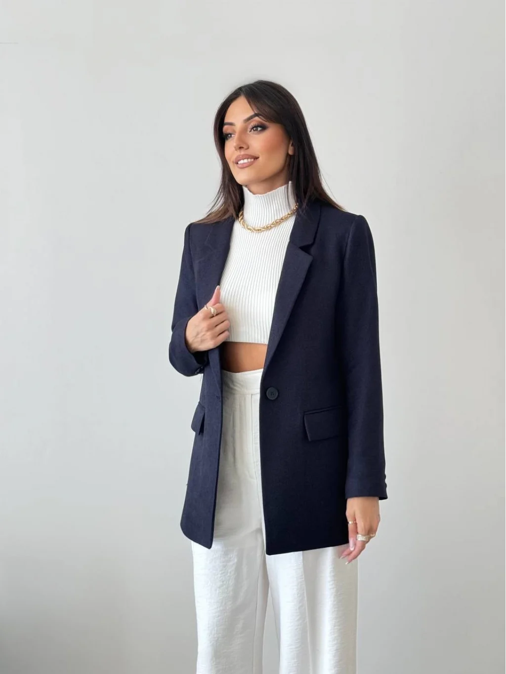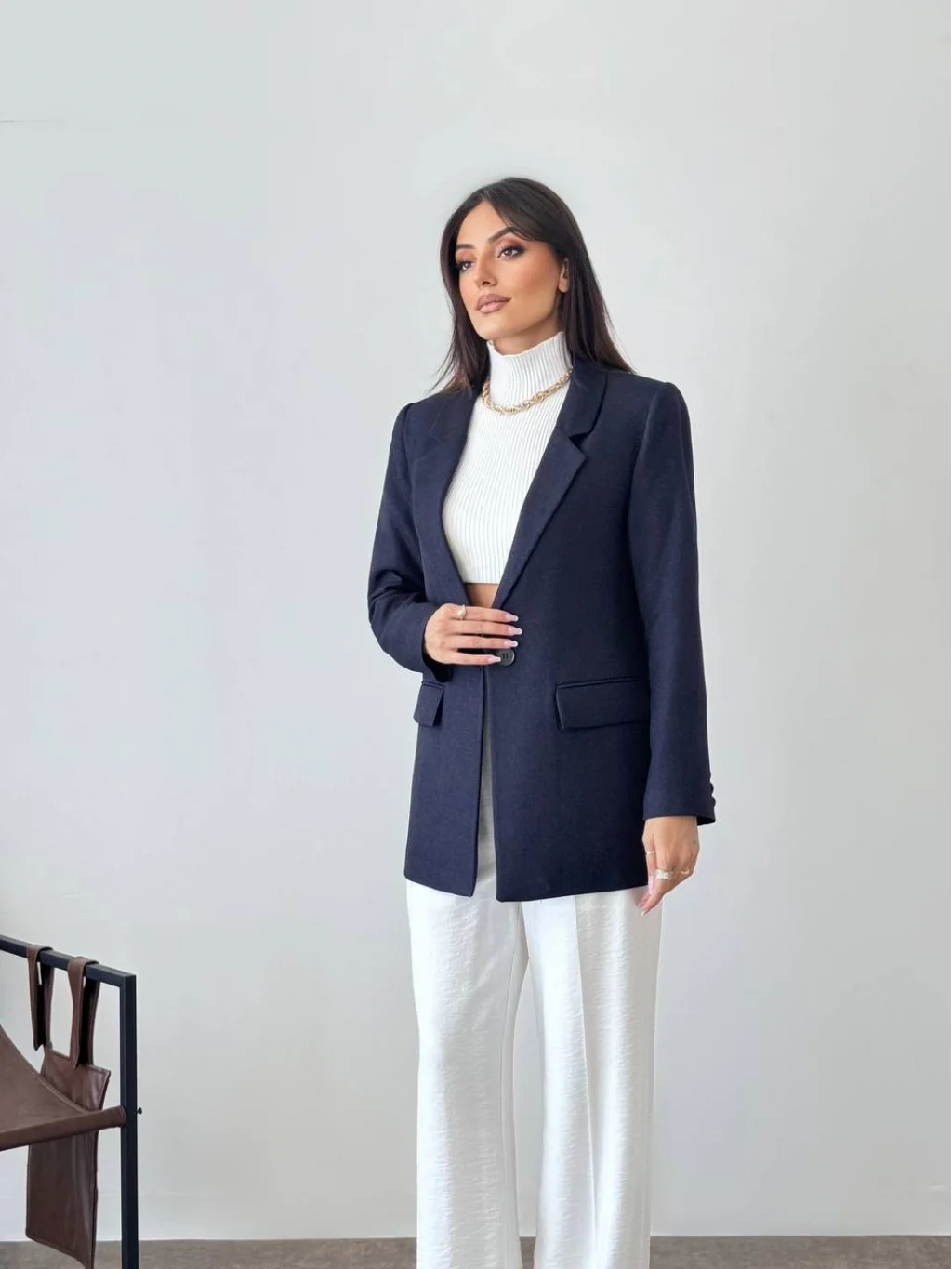 • MYRA'nın yün efekt kumaşlı, tek düğmeli ve astarlı Lacivert Blazer Ceketi, şıklığınızı tamamlamak için ideal bir seçenek.
