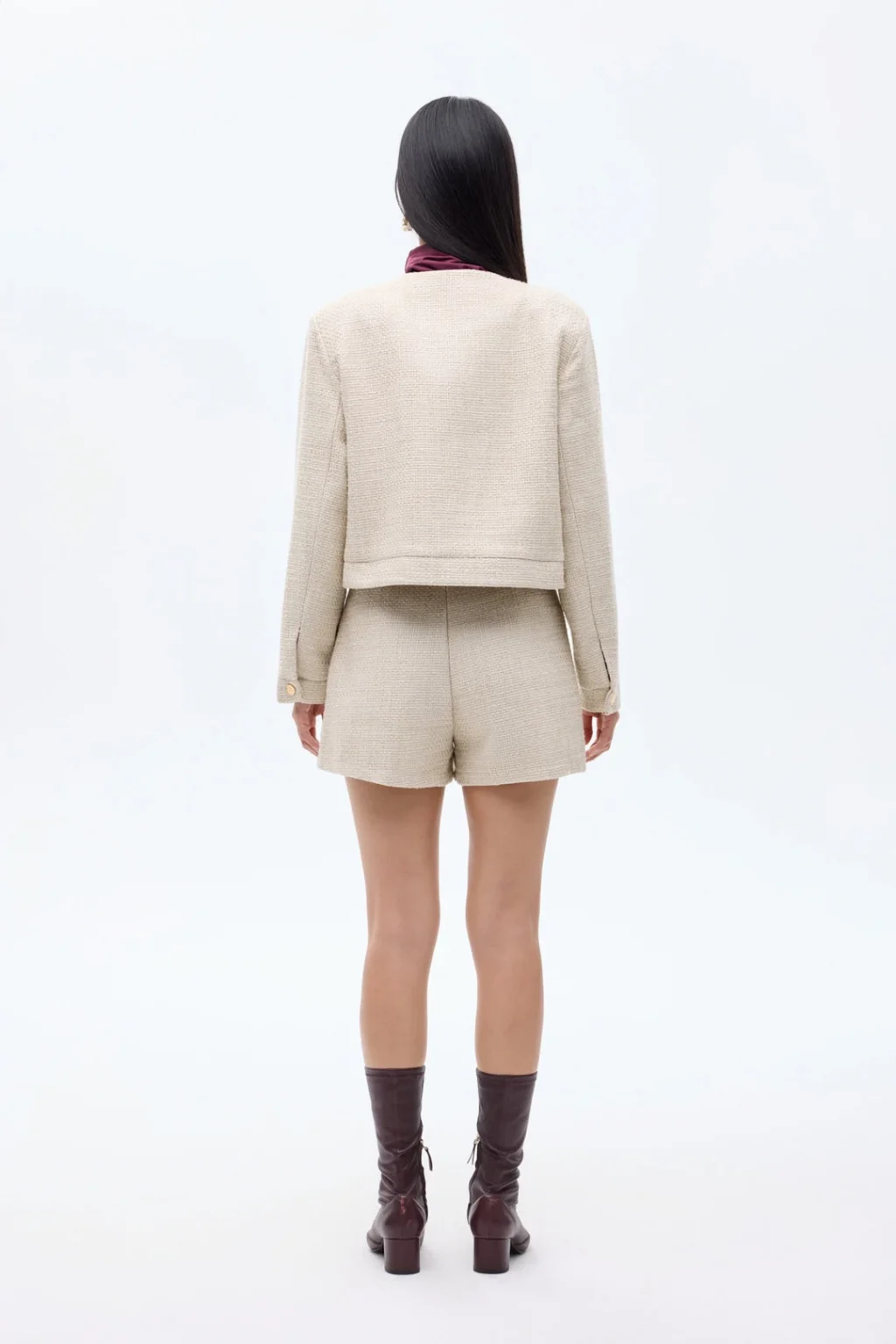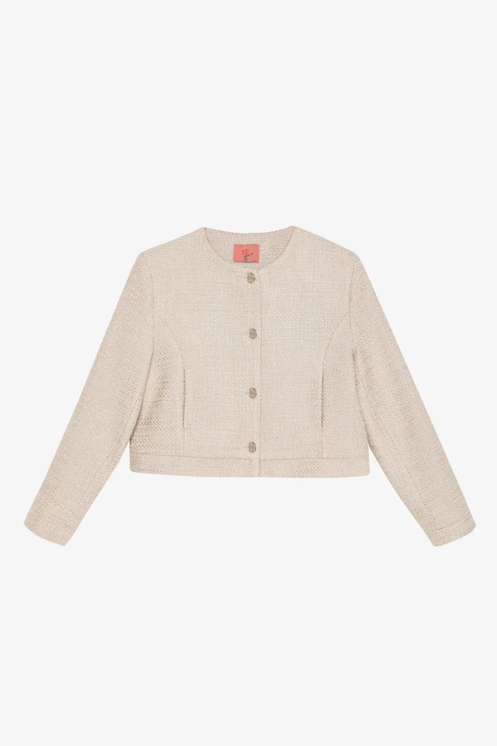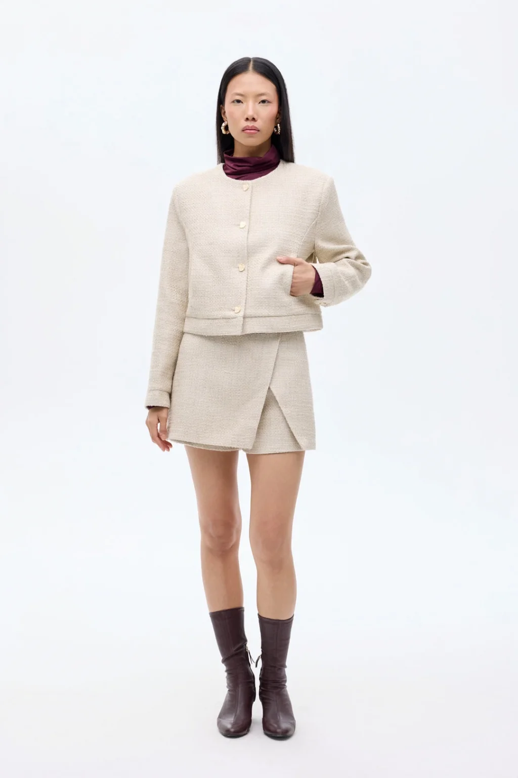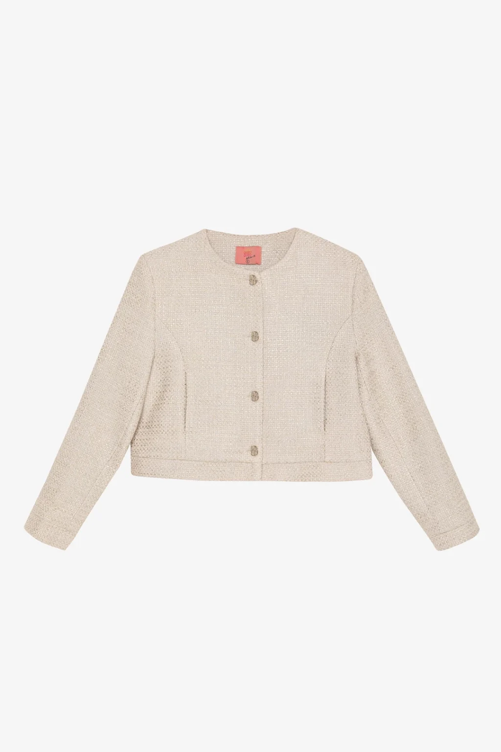 MYRA Yuvarlak Yaka Düğmeli Tüvit Ceket Bej, şıklığı ve tarzı bir arada sunar.