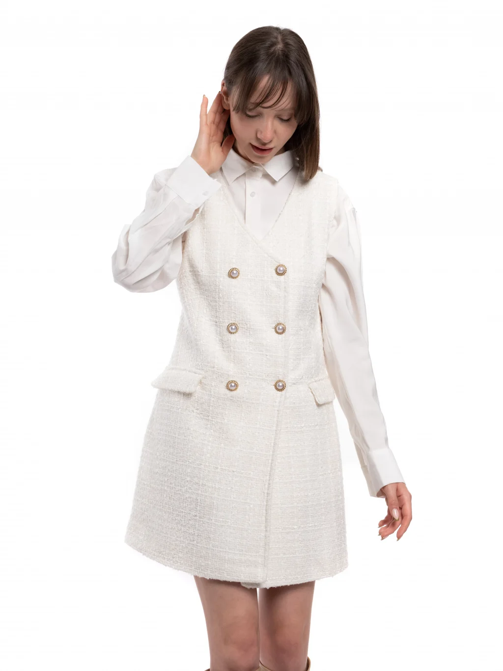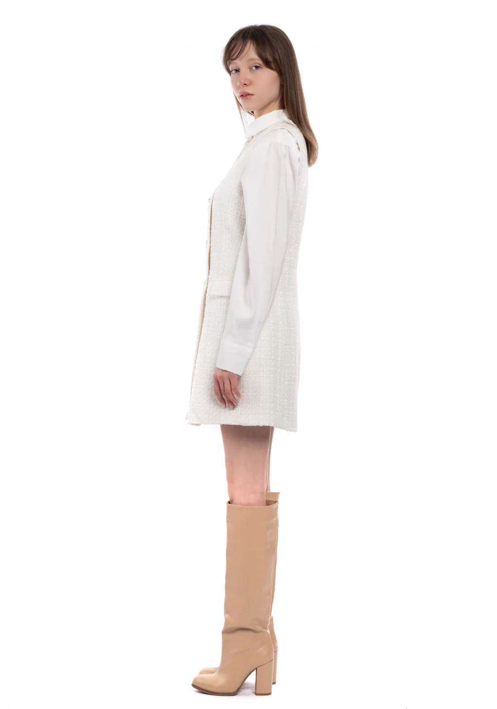 Zara Düğme Detaylı Beyaz Tüvit Gömlek Elbise