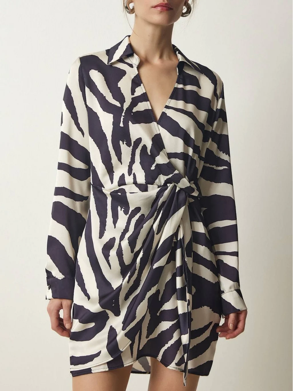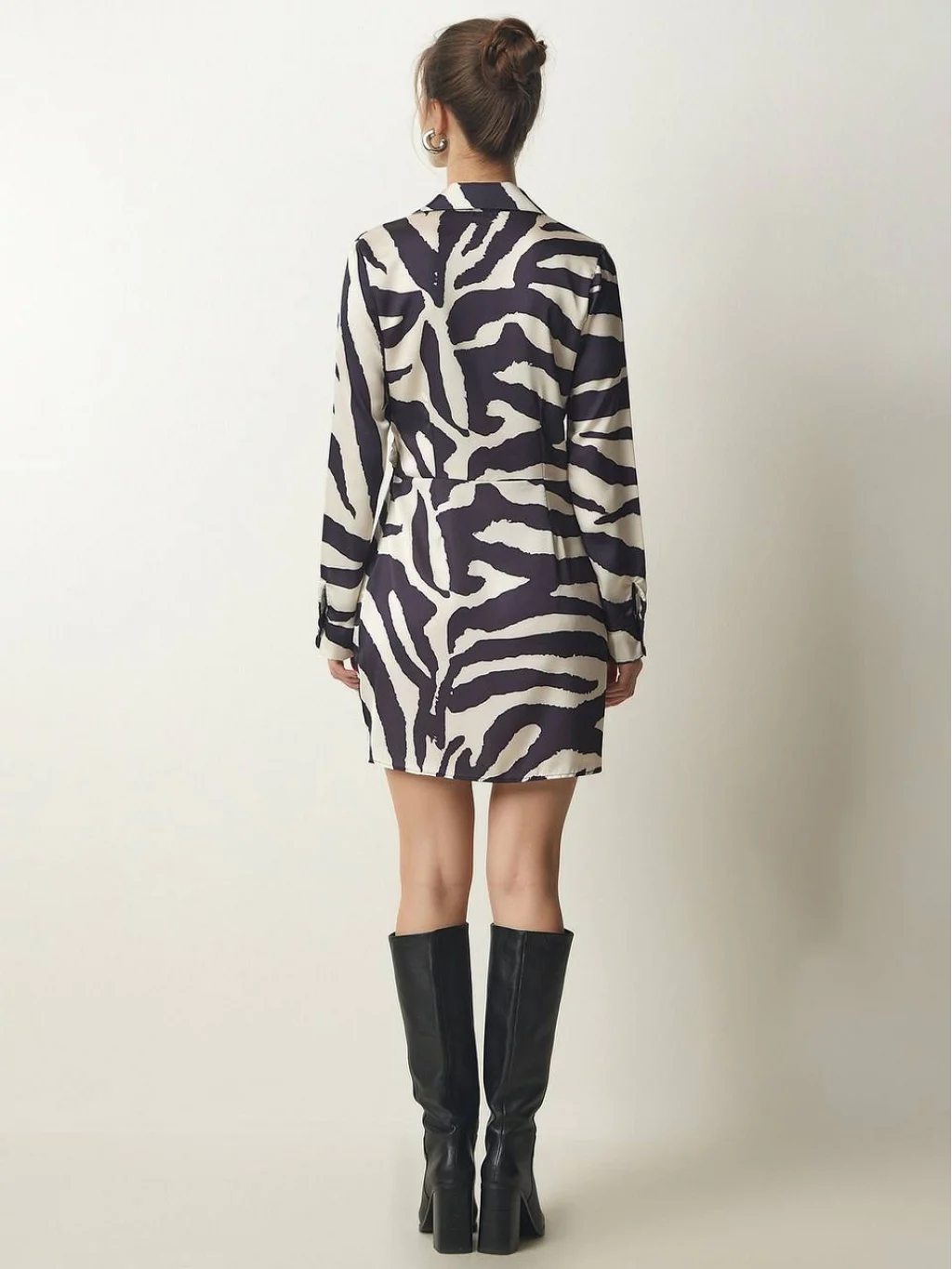 ZEBRA DESEN SATEN MİNİ ELBİSE