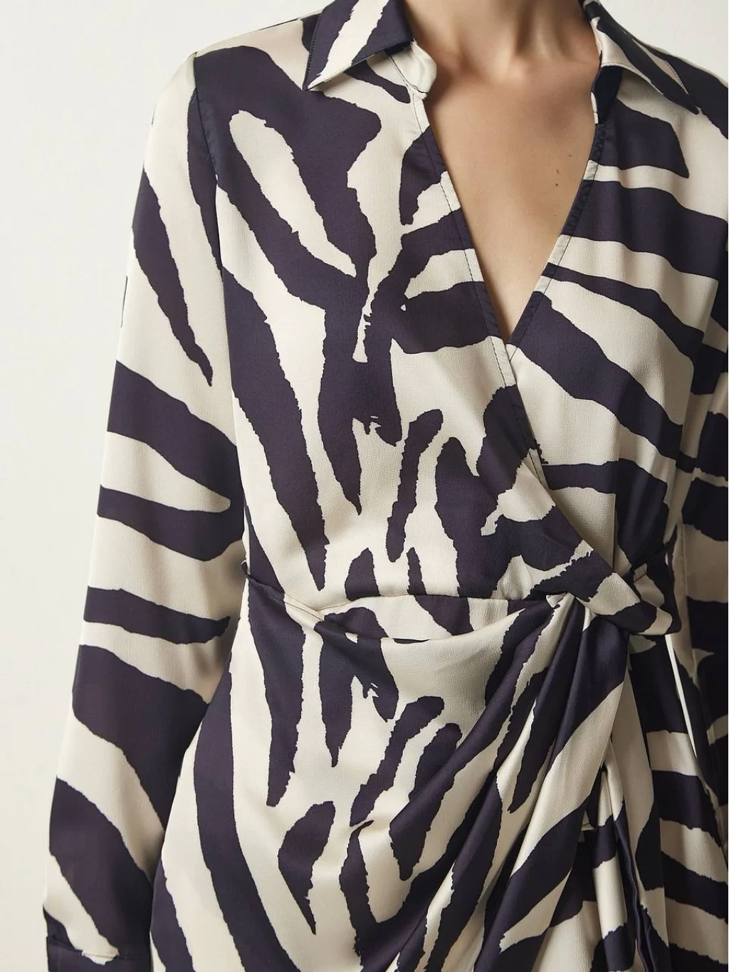 Zebra Desen Saten Elbise modeli yeni sezonun en dikkat çeken parçalarından. Mini aksesuarlar ile tercih edebileceğiniz elbise favoriniz olacak. MYRA GİYİM mağaza ve online kataloğunda yer alan elbise modelleri ile gözler hep üzerinizde.