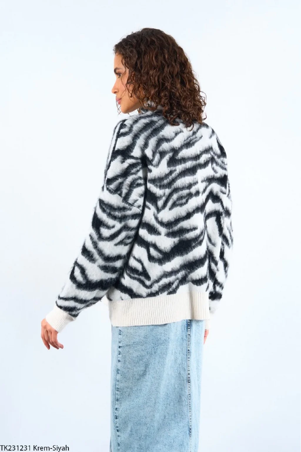 ZEBRA DESEN YARIM BALIKÇI KAZAK