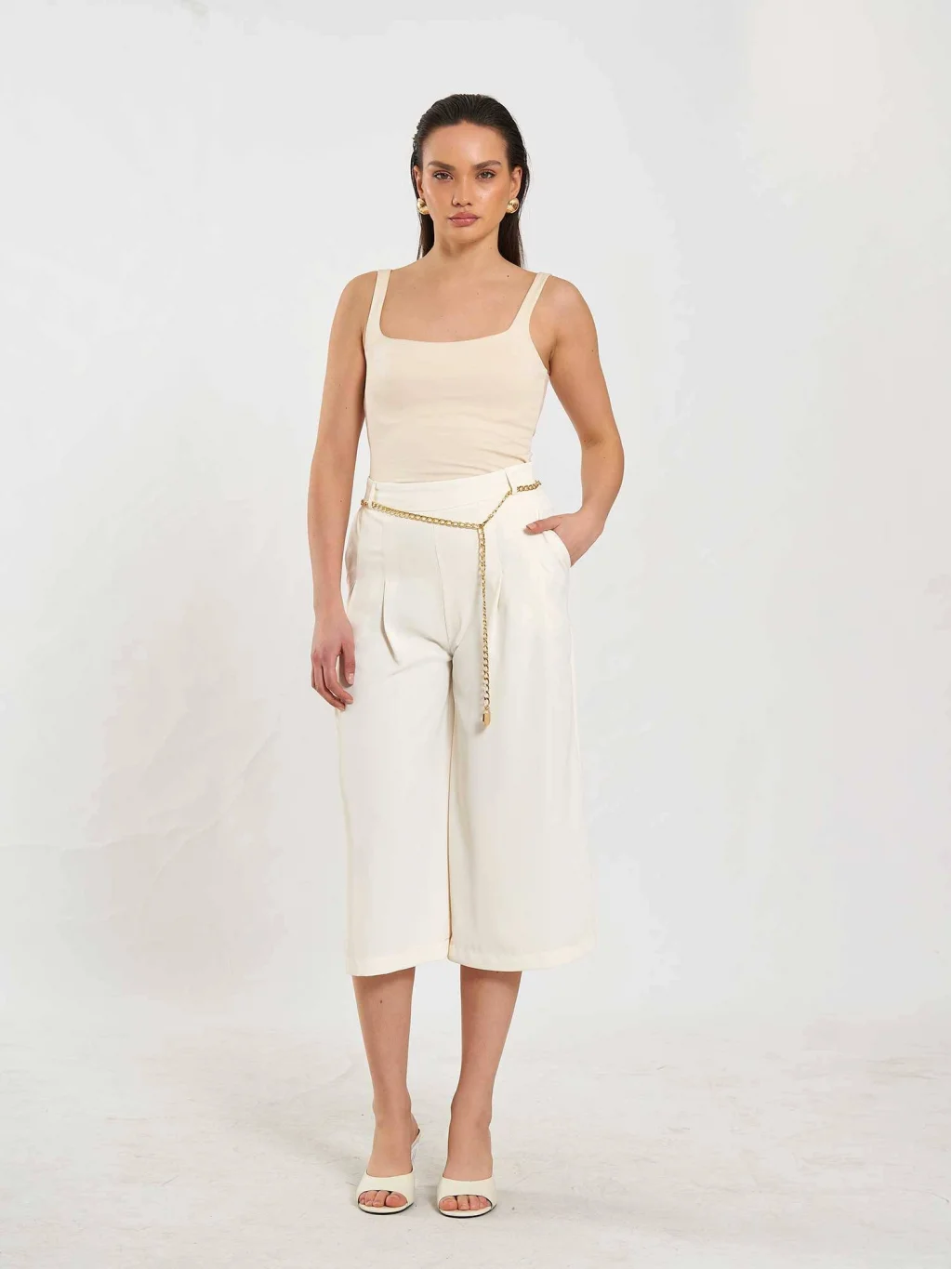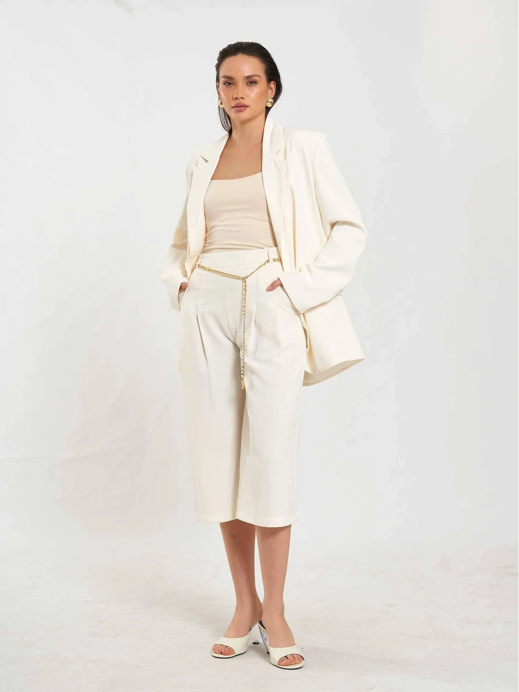 MYRA Zincir Kemerli Bermuda Pantolon-Ekru, şıklığı ve rahatlığı bir araya getirir.