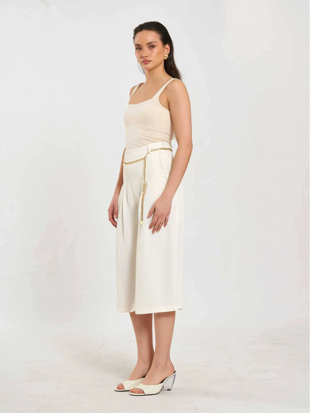 Zincir Kemerli Bermuda Pantolon-Ekru