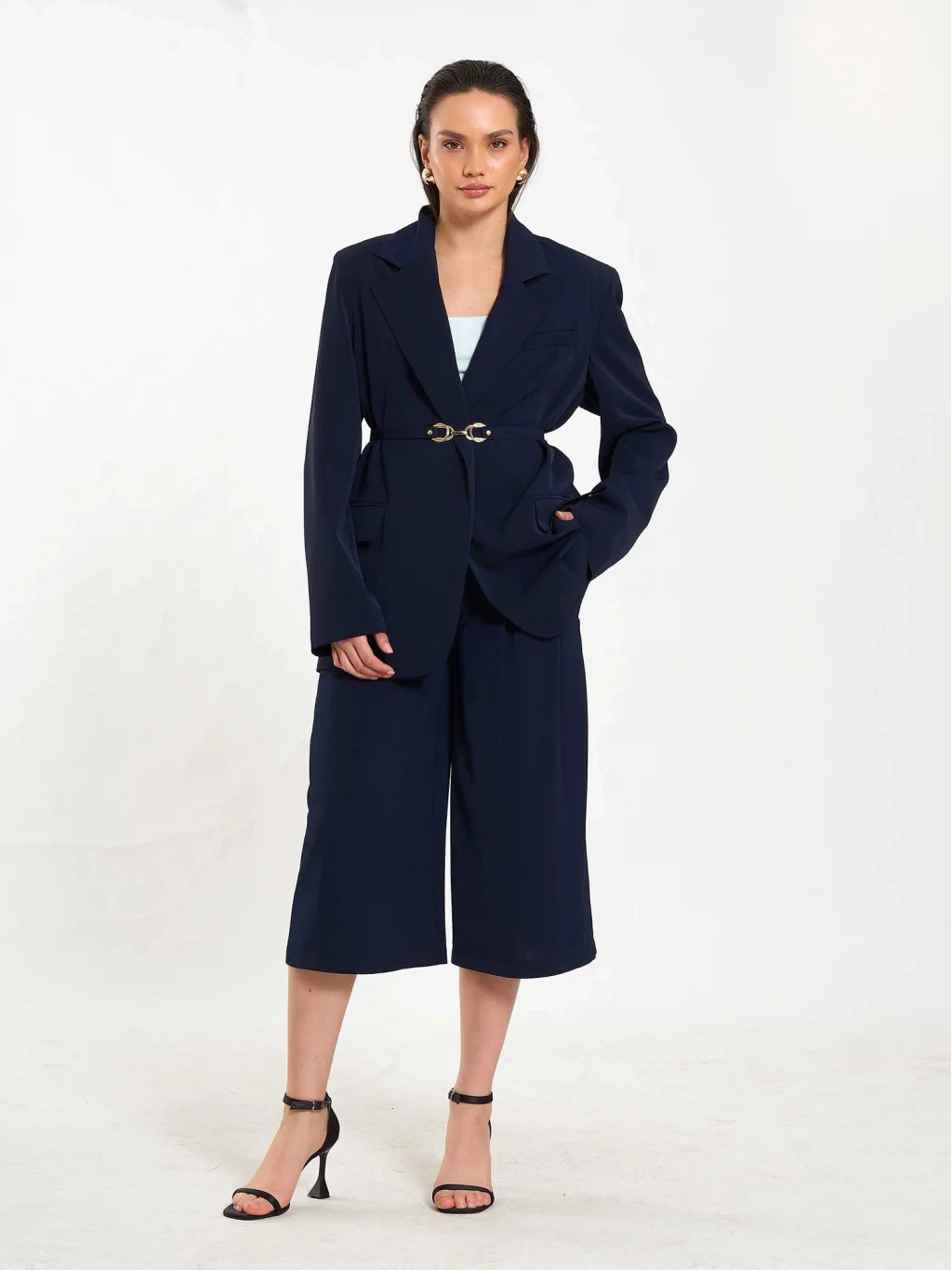 MYRA Zincir Kemerli Bermuda Pantolon-Lacivert, tarzınızı yansıtan şık ve rahat bir seçenektir.